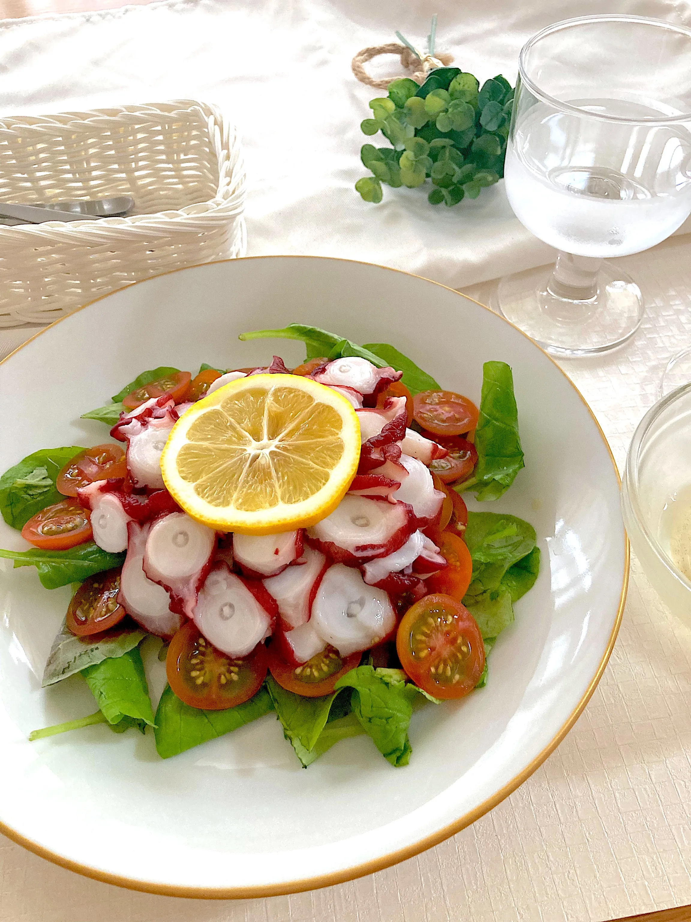 タコのカルパッチョ涼しげで盛り付けがとっても可愛いです🥰