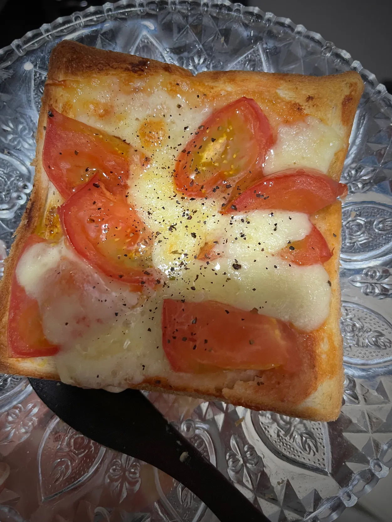 #モッツァレラ が余ったのでトマトと一緒にトーストするだけでピザ気分🍕朝から最高☀️
