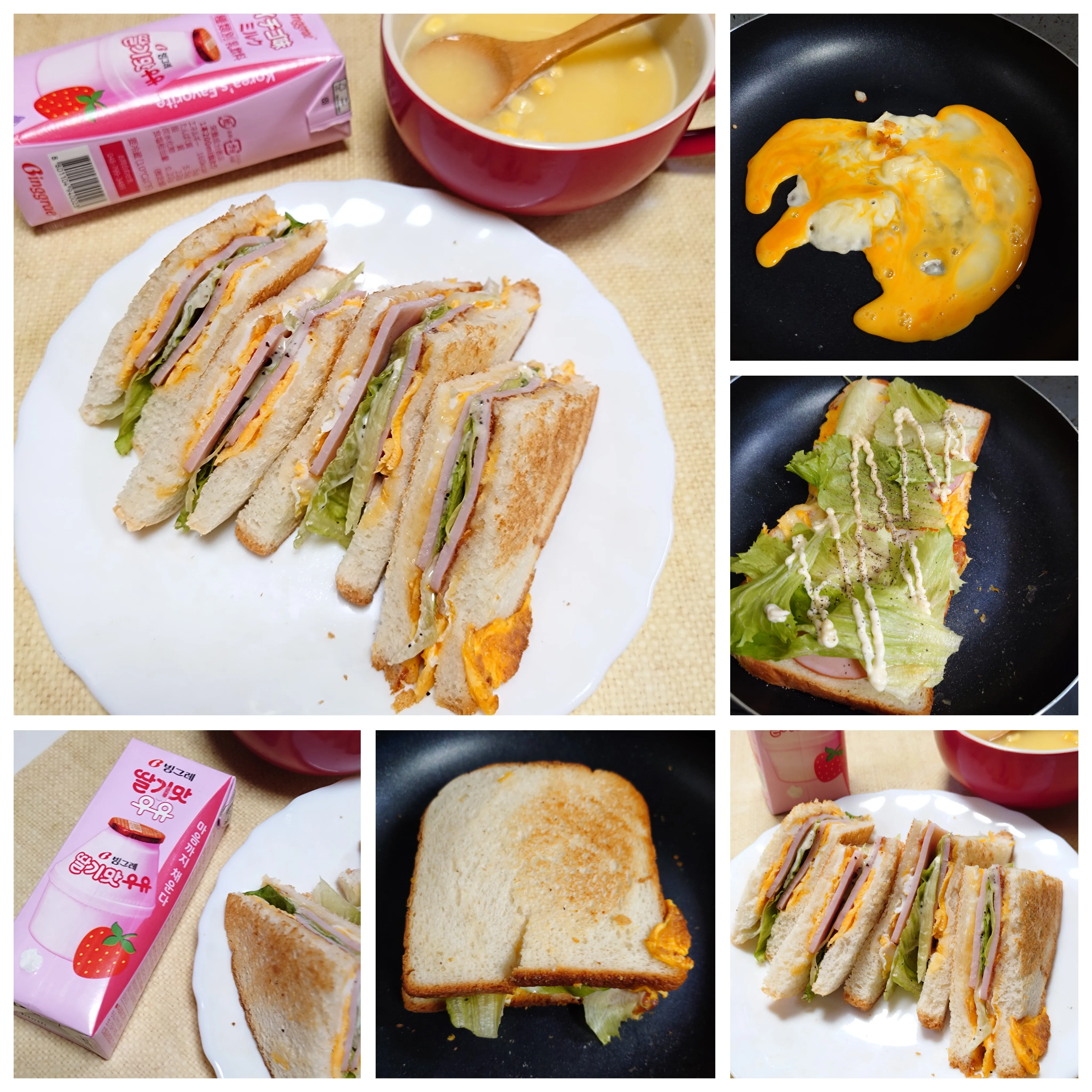 #ホットサンド#カフェ風#エッグチーズ#レタスハム#いちごミルク#いちごオレ