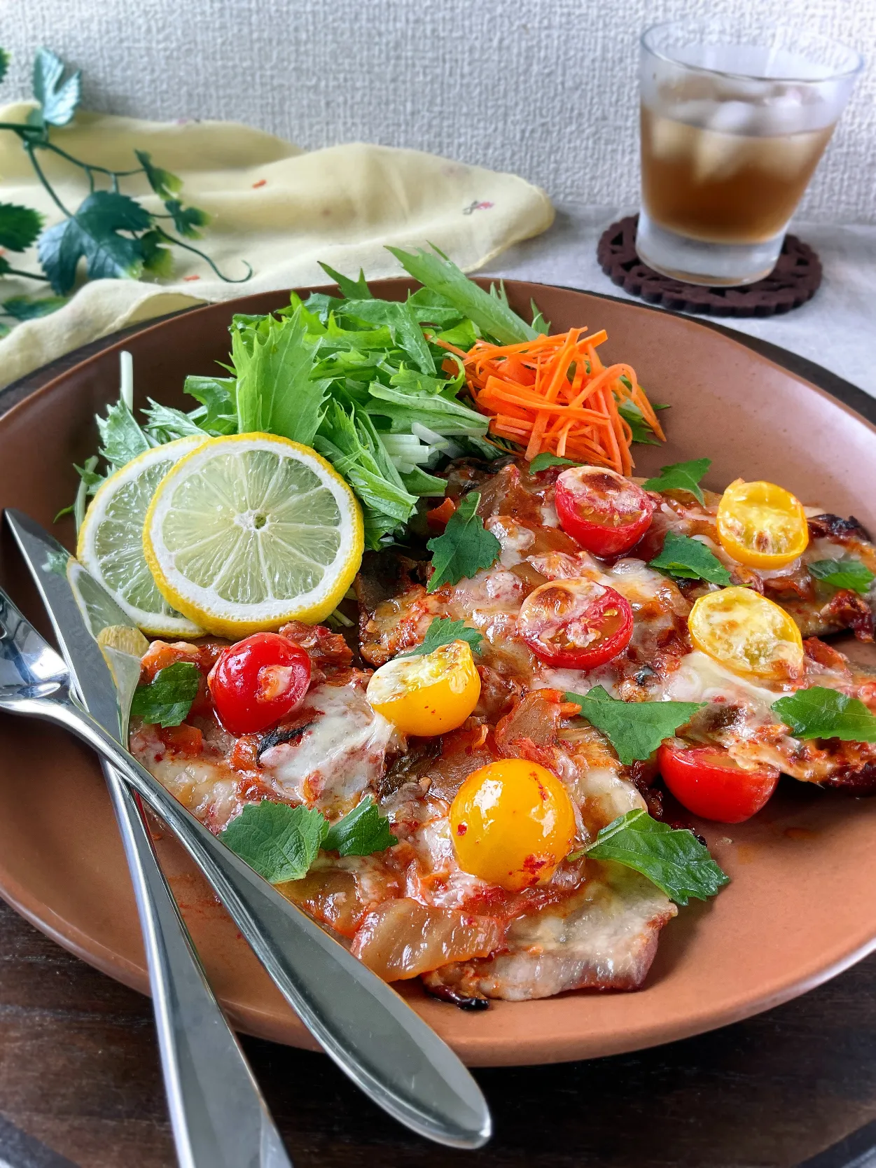 キムチチーズで、ごはんにもおつまみにもピッタリなおかずピザ😍✨