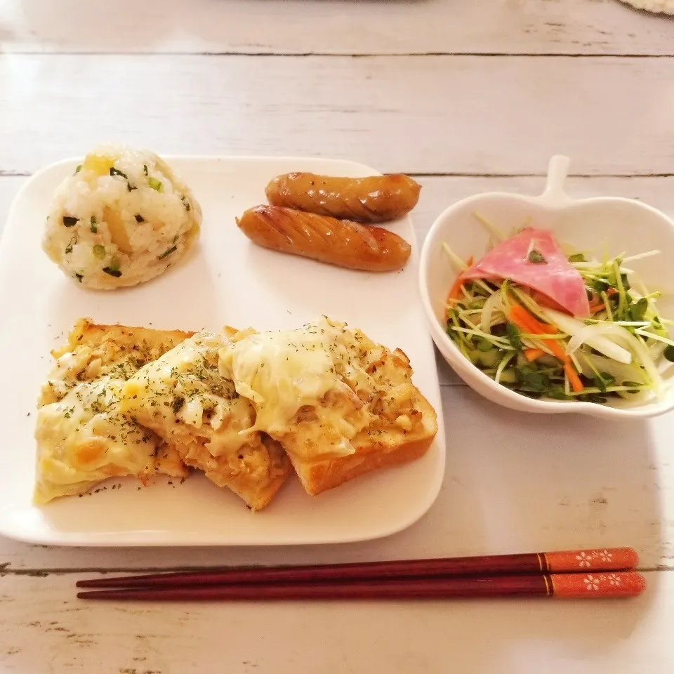 *ツナチェダー風トースト*玉ねぎをみじん切りに。ソテーして、かさましのちくわは、小さめにカット。それも一緒にソテー。塩コショウして、冷ます。さめたら、油ぎりのツナと、余っていた味たまつぶし、マヨネーズで和える。コショウを多目にすると、ピリッとおいしいです!あとは、焼くだけ~チーズは好きなひとはのせて、焼いて苦手なひとはそのまま焼くだけでもおいしいです❤