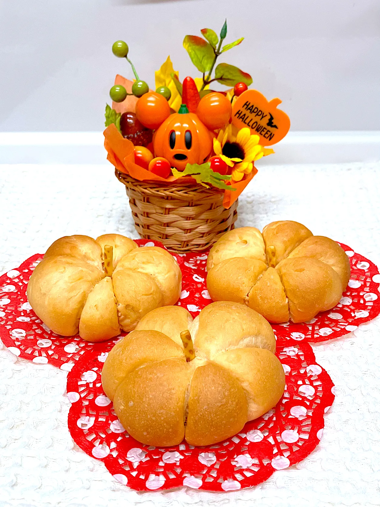フィリングはカスタードクリームです #ハロウィン #菓子パン #かぼちゃパン #クリームパン #自家製カスタードクリーム