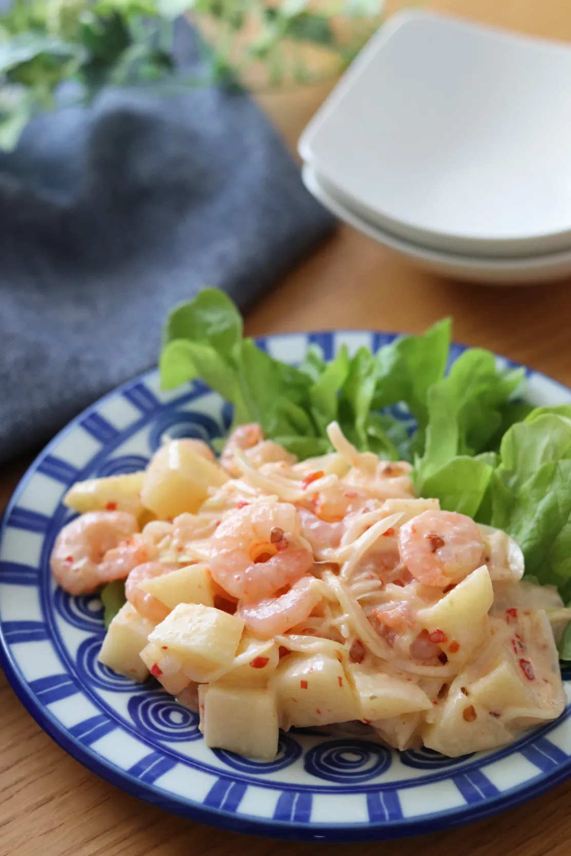 むき海老とじゃがいもはレンチン♪ あとは混ぜるだけ簡単💗