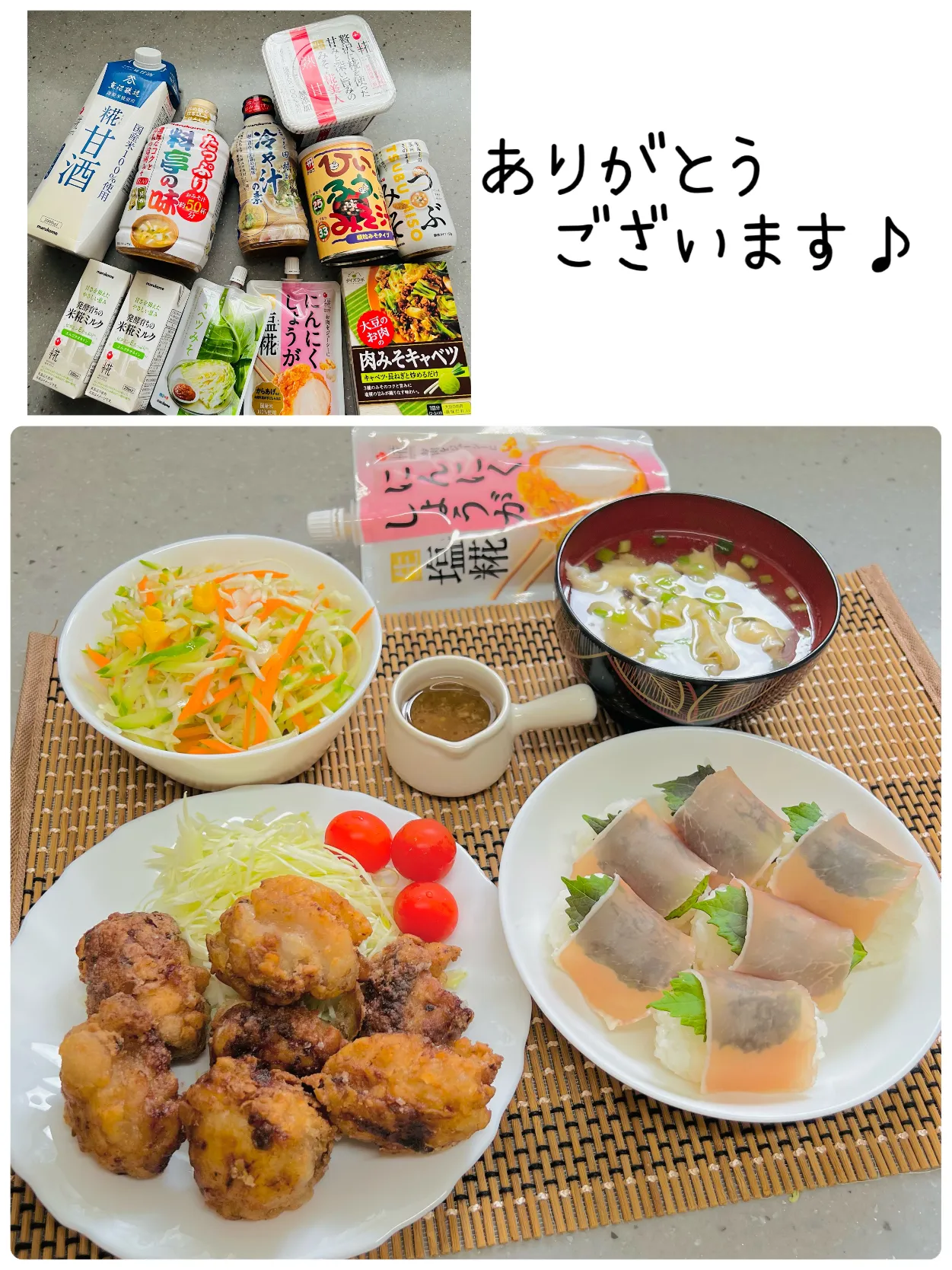 にんにくしょうが塩糀使いの唐揚げにドレッシングが食欲そそります😋❣️