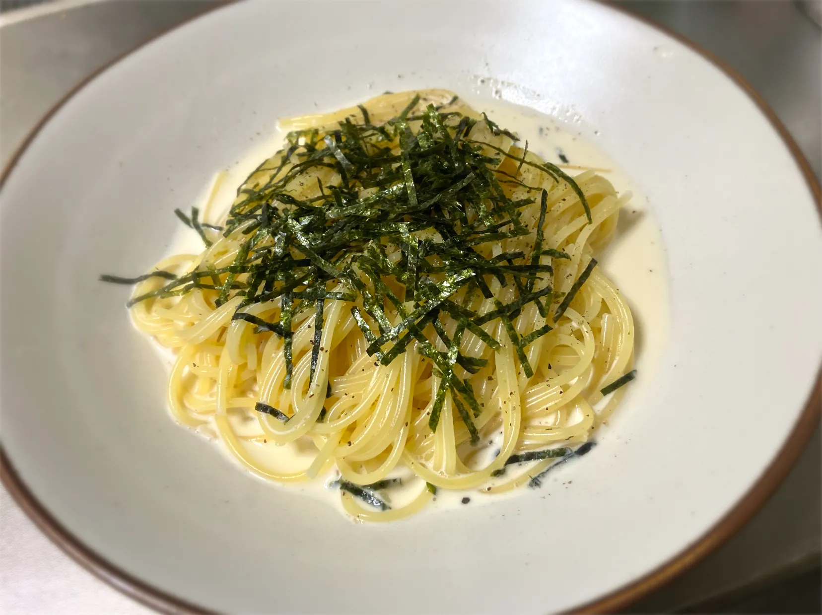 生クリームとバター、明太子、白だしを入れたボールに湯がいたパスタを入れて混ぜただけ