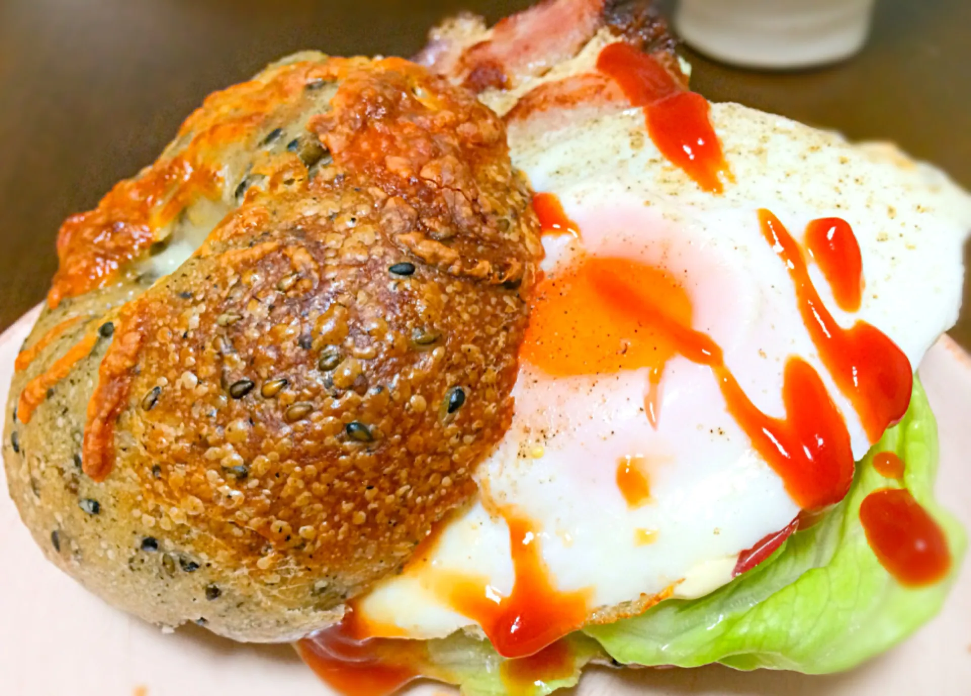 ゴマチーズベーグルのベーコンエッグサンド