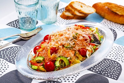 焼き鮭と夏野菜のたっぷりおかかマリネ
