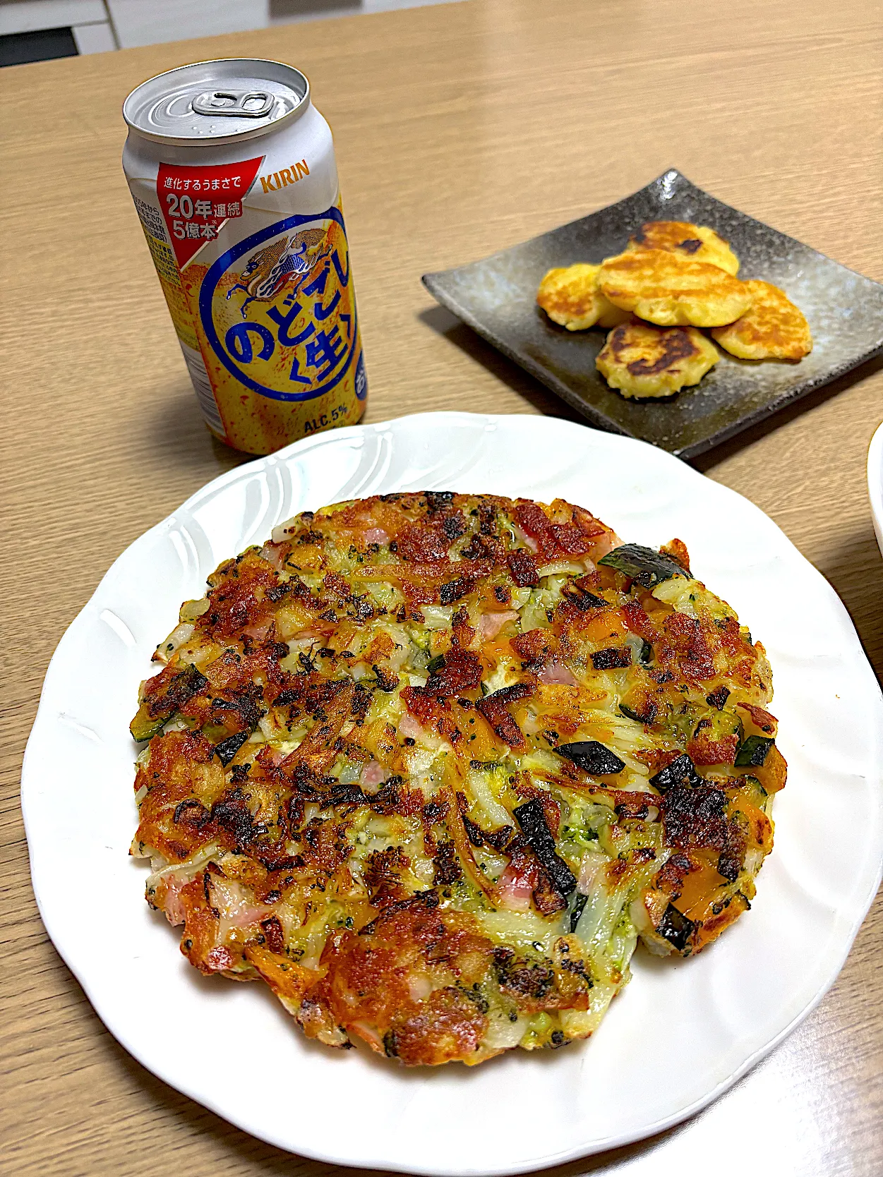 #夜ご飯 #晩酌 #手作り#ガレット#野菜#さつまいも#バター焼き#ビール