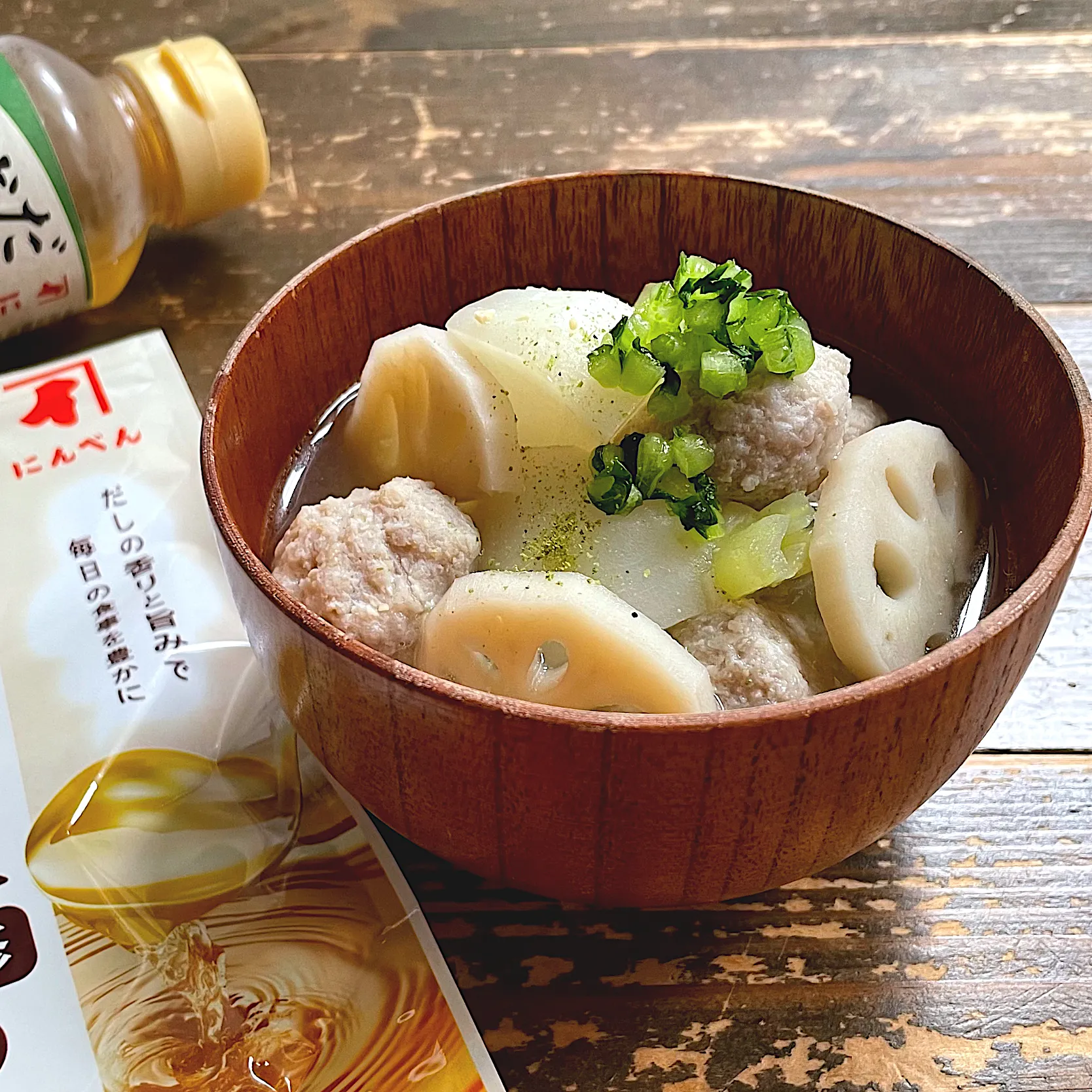 #和食 #味噌汁 #根菜 #鶏団子 #蕪 #蓮根 #にんべん #タニタ #にんべんだしアンバサダー #だしのある生活 #にんべんタニタとだし味噌汁 #PR