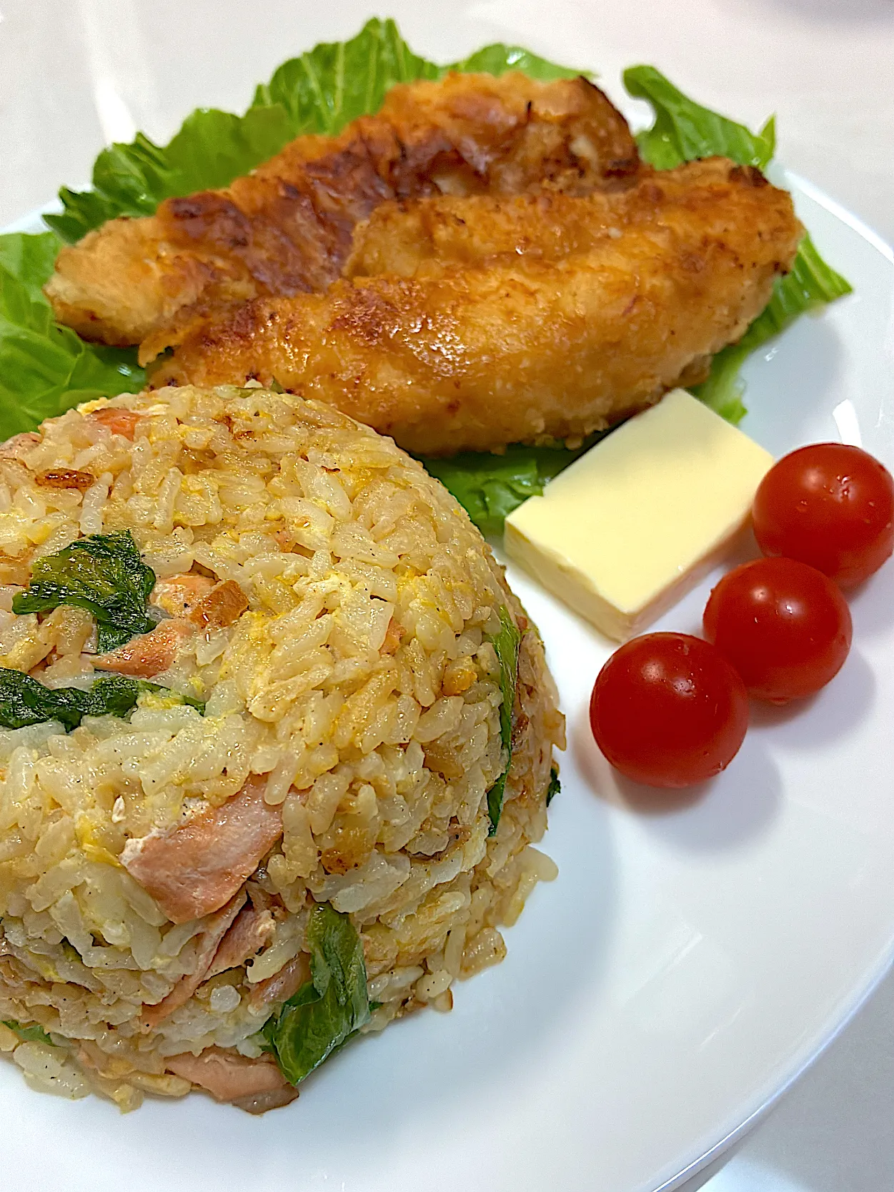 鮭レタスチャーハン&ささみの竜田焼き&チートマ