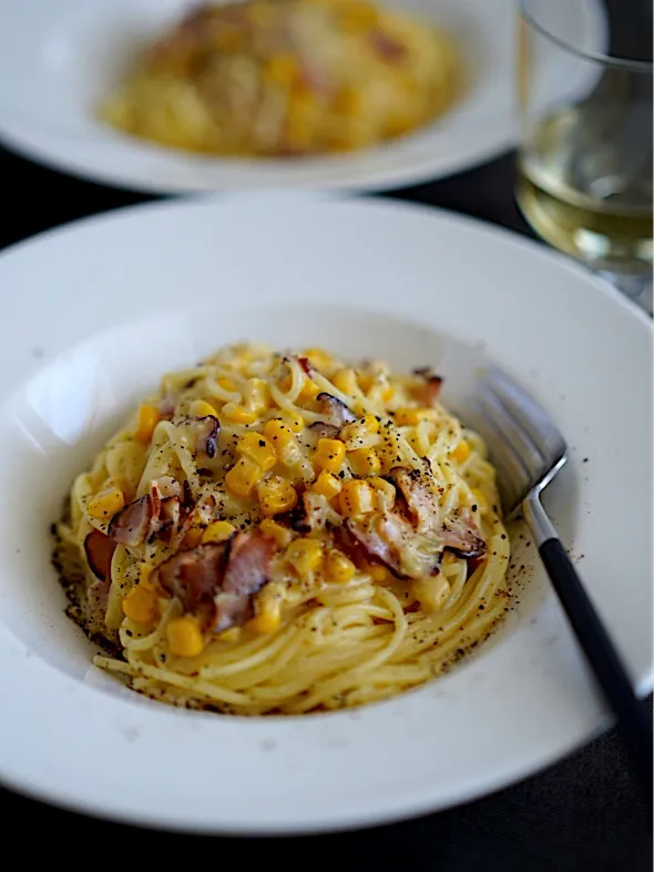 ベーコンと玉ねぎ、缶詰のコーンを加えて、そこそこ手をかけて作ったら美味しい😋