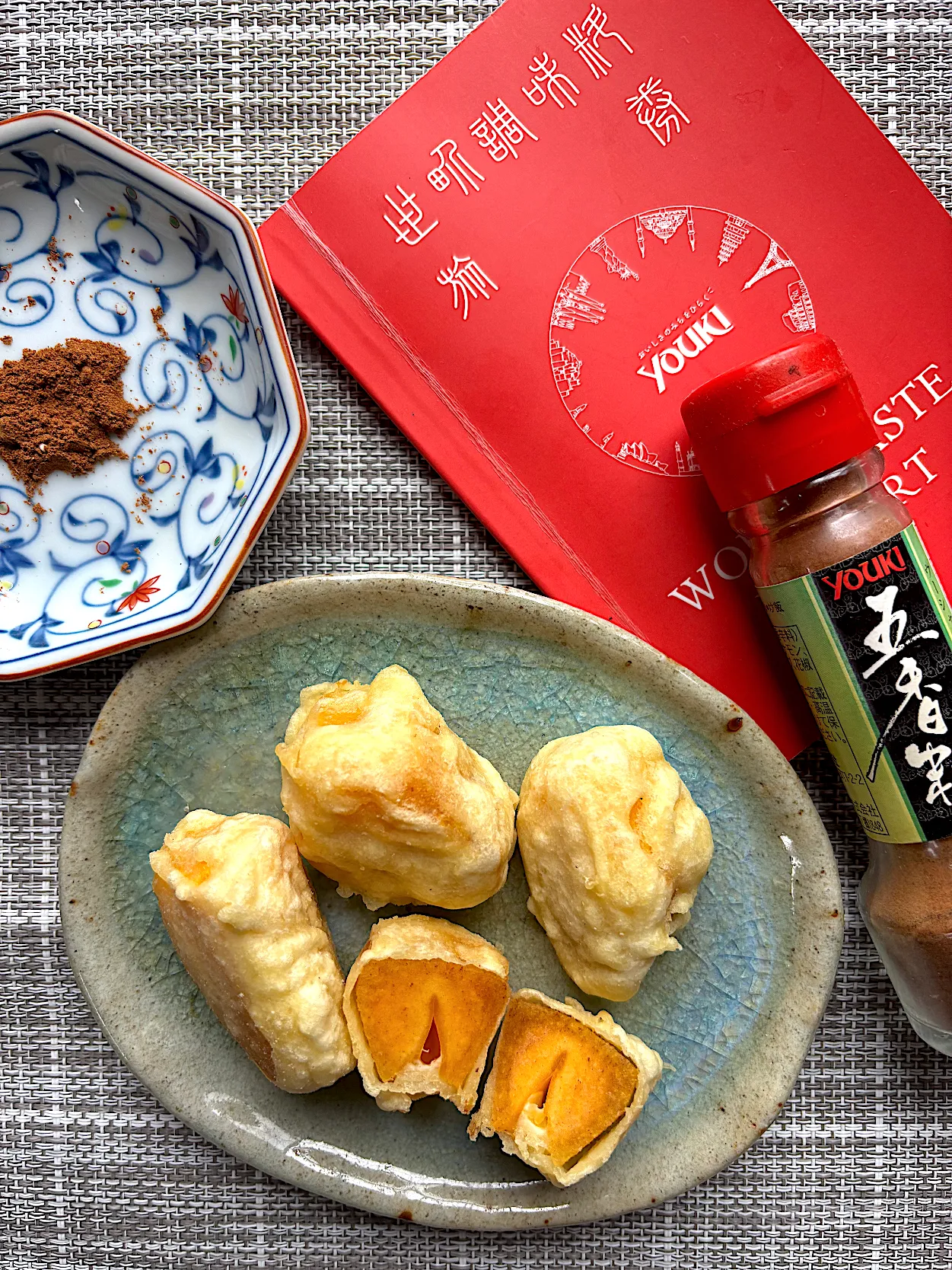 周りにサクッとした衣、中から甘〜い柿が美味しい天ぷらを五香粉の香りとともに味わえます。