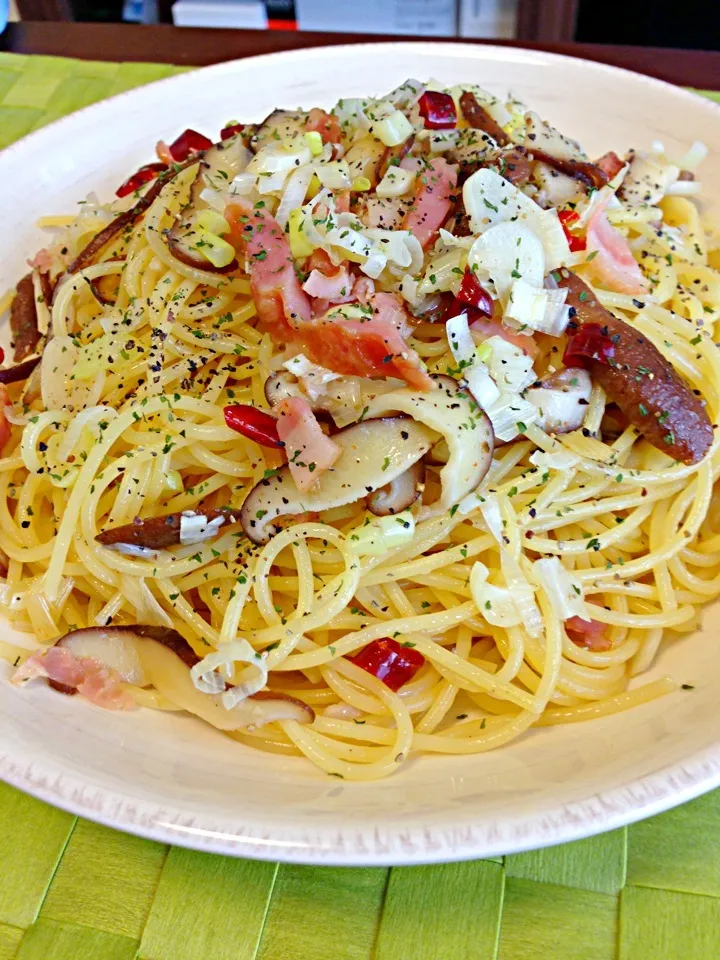 シイタケと長ネギのペペロンチーノ