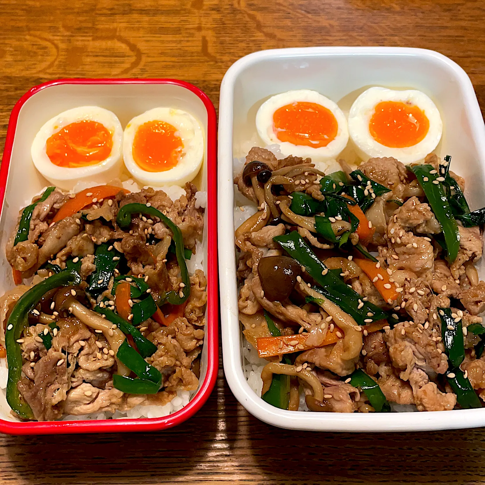 肉野菜炒め、茹で卵