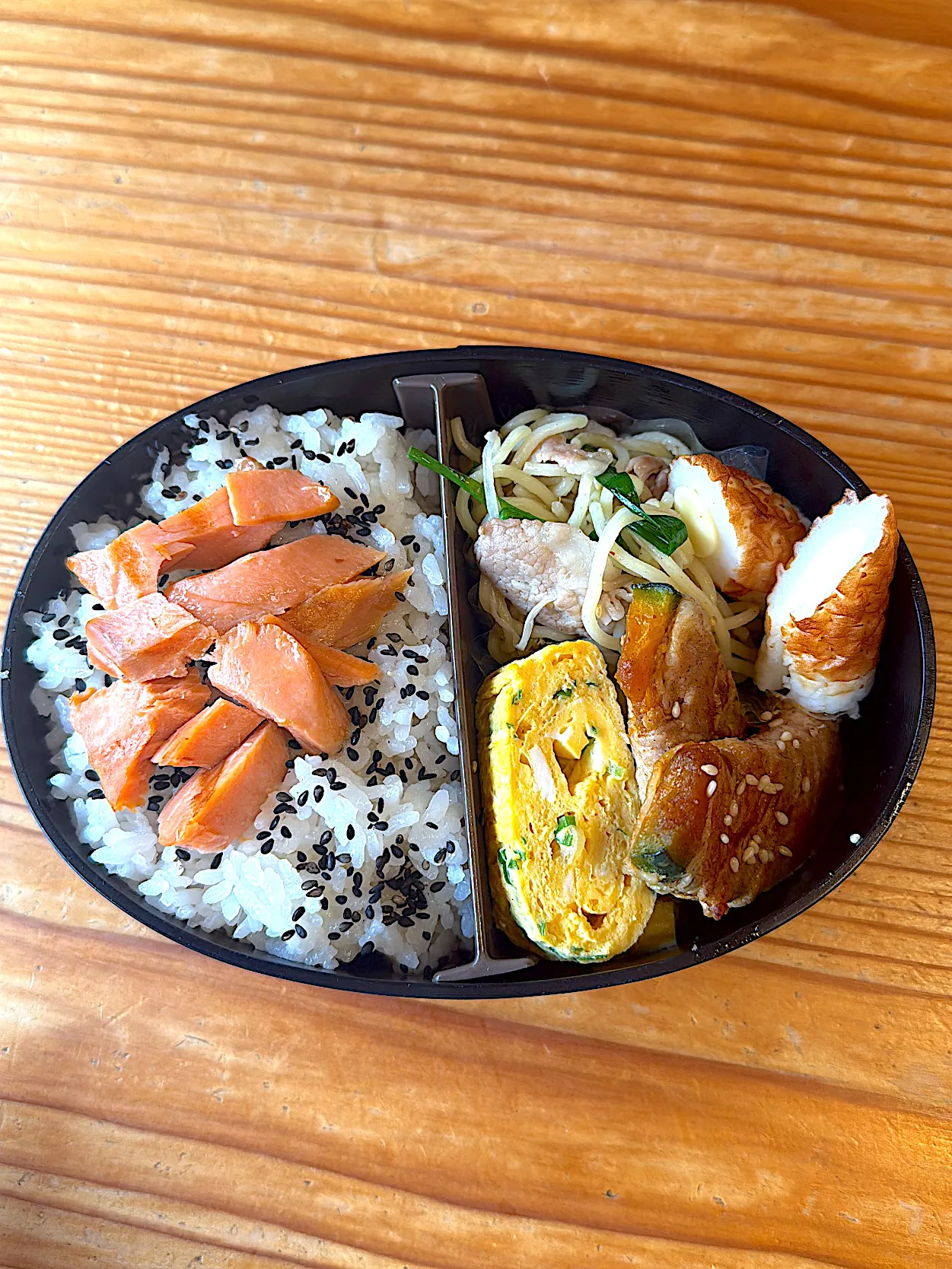 土曜日弁当(塩焼きそば、なんきん豚巻き)|ももかさん