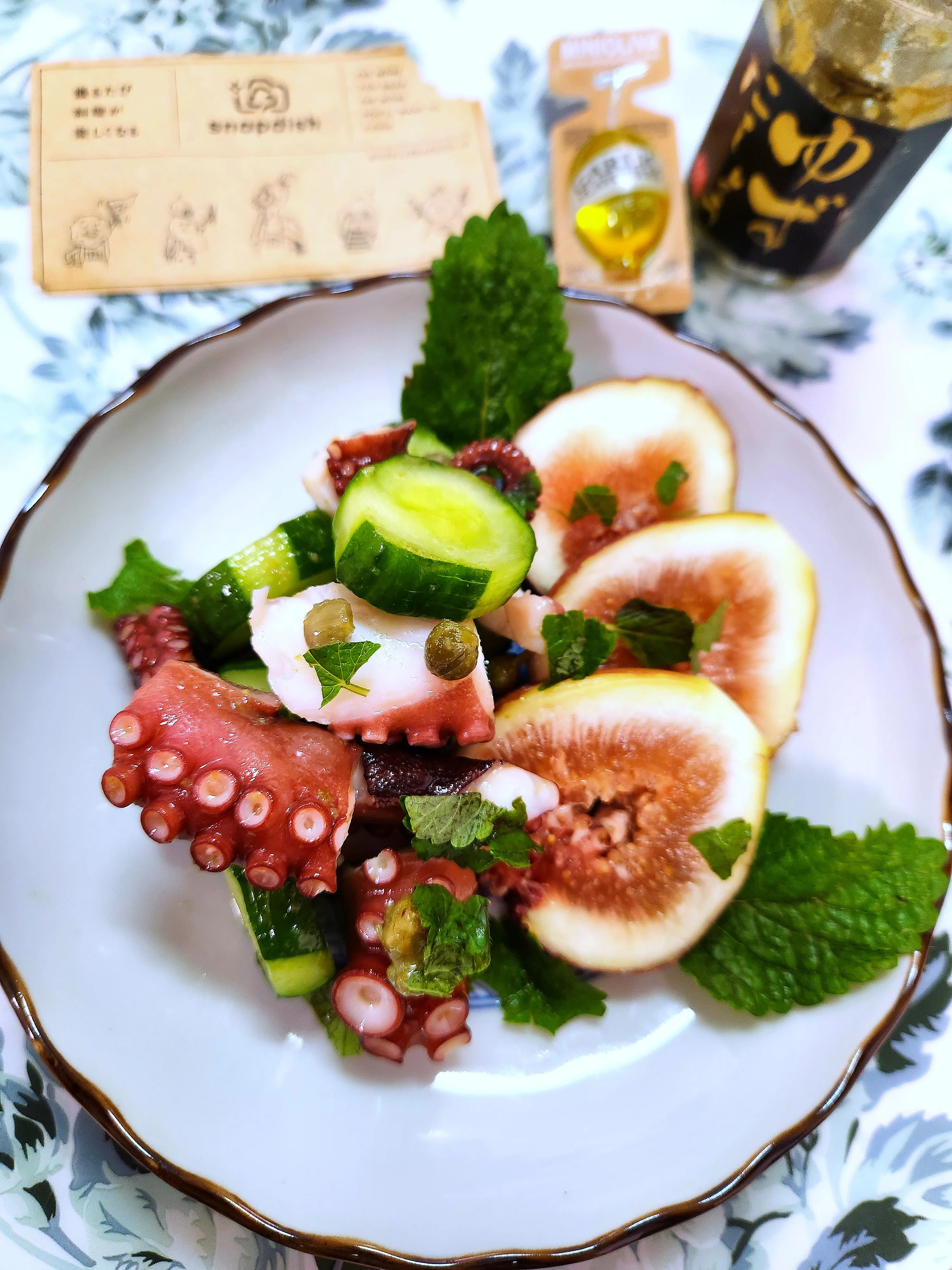 無花果をキレイにあえる自信がなくそっと添えてみた食べる時は、混ぜて召し上がれ~