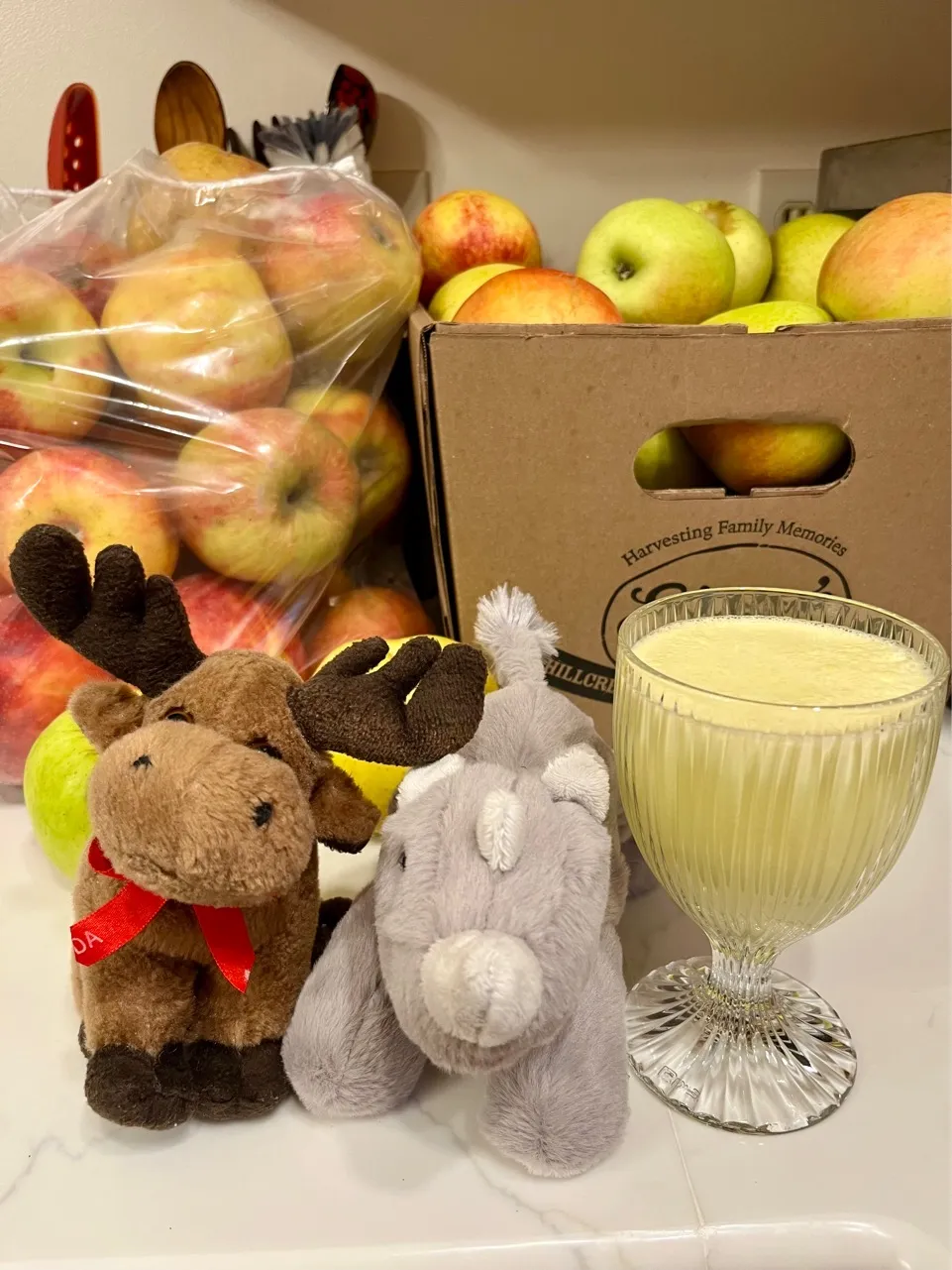 さて、りんご農園を回ってたくさんりんごを買ってきました。まずはちょっぴりセロリを入れてりんごジュースにしました。新鮮でとてもおいしかったです。