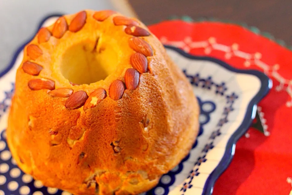 今年のクリスマスのスイーツはクグロフ⭐️キルシュに漬けたドライフルーツとナッツたっぷり練りこんだ、パウンドケーキみたいなパンです😃