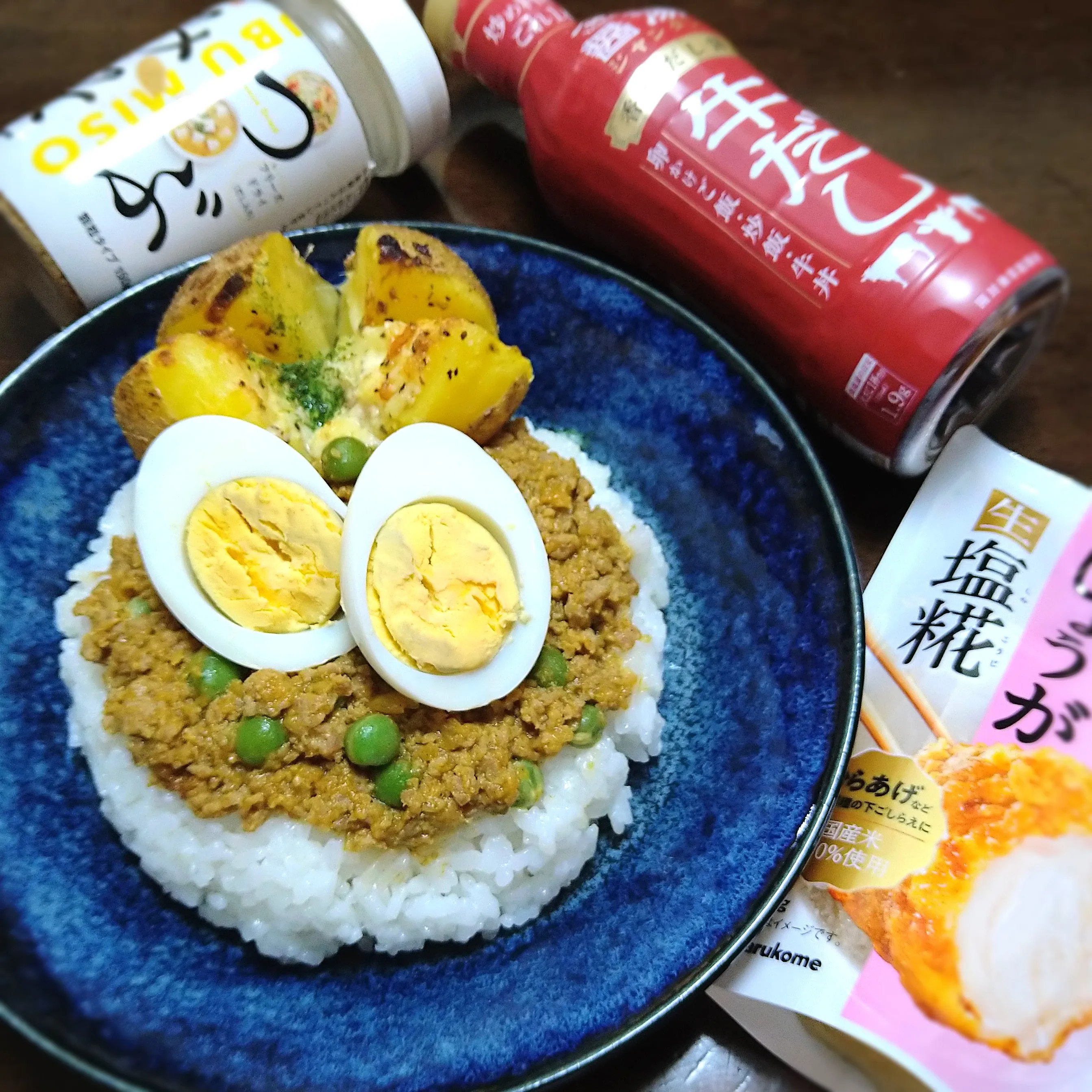 キーマカレーをかけて食べると旨い‼️😋🥔👍🏻