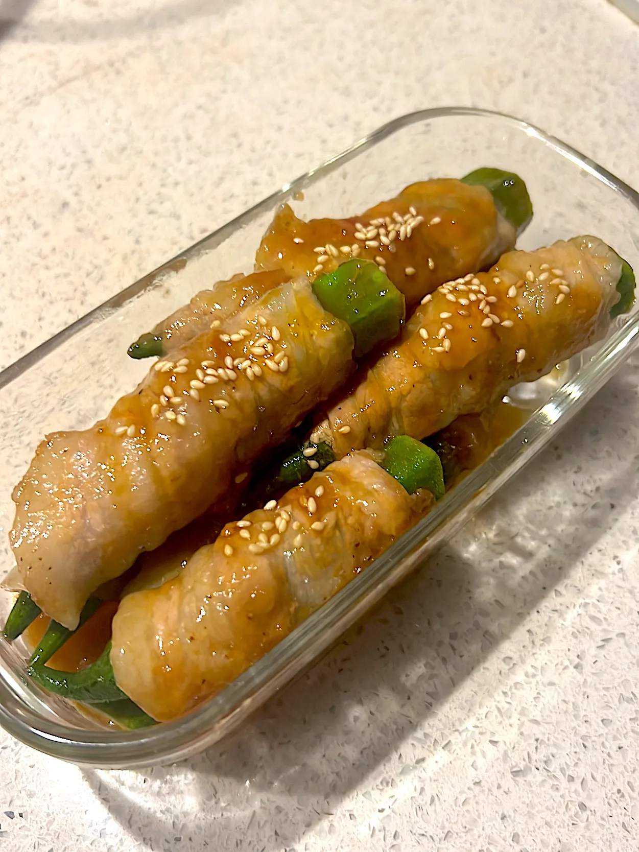 #肉料理#オクラ#ちょびっと固かった#今度はしっかり焼いてみよう!