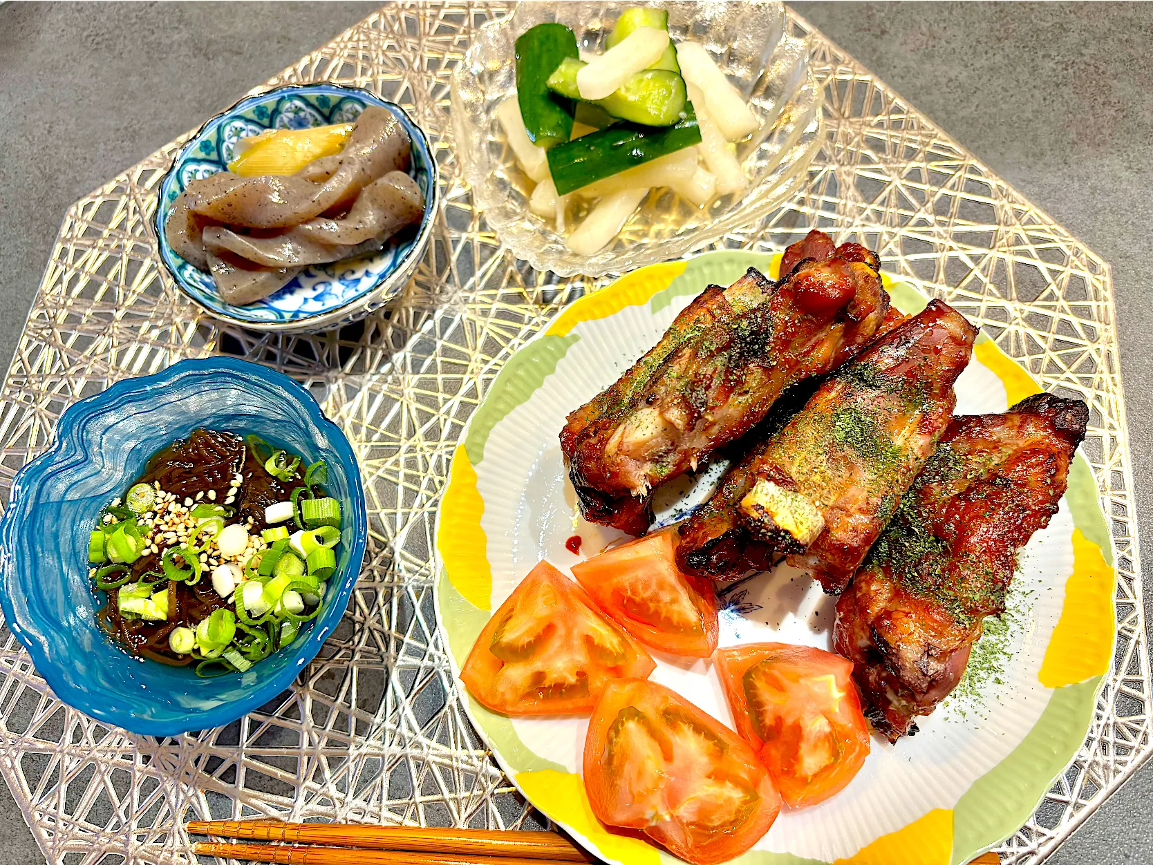 ジップロックに酒しょうゆニンニクしょうが塩胡椒を入れて一晩漬け込んでオーブンで焼くだけ簡単