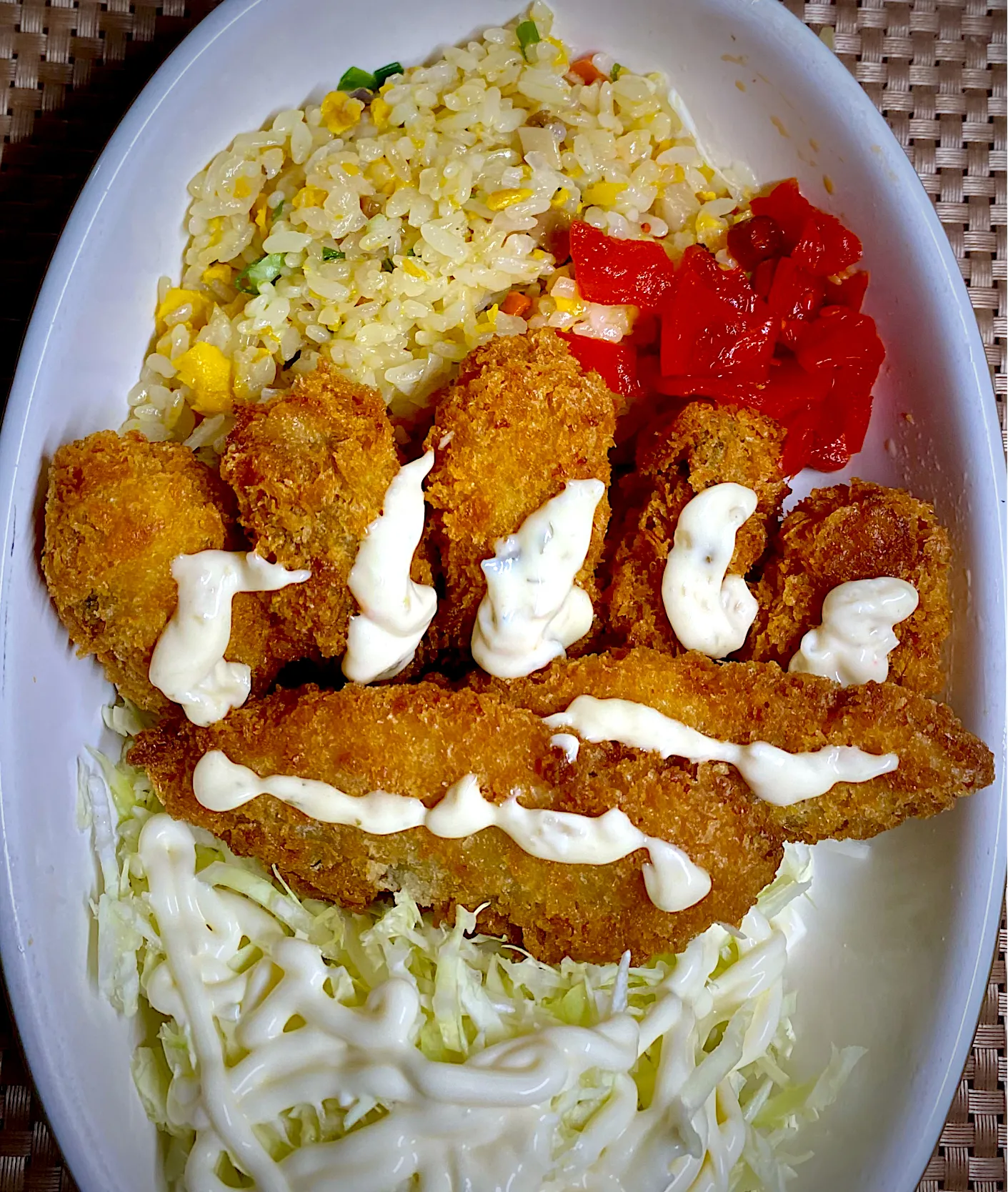 牡蠣フライと炒飯|すくらんぶるえっぐさん