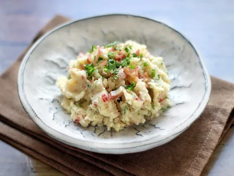 いつものポテトサラダを、さっぱり和風味にチェンジ。梅ベースのさわやか味つけとたっぷり薬味で、梅雨時もさっぱりと楽しめます。