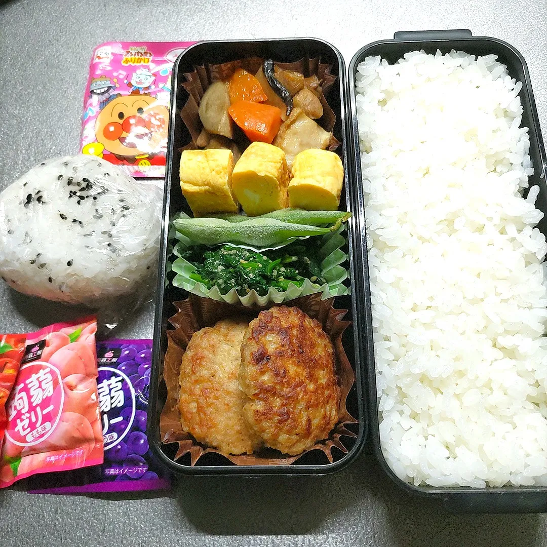 毎日卵焼き 自然解凍枝豆#グルテン控えめ #追加のおにぎり #つくりおきおかず #高校男子お弁当 #こんにゃくゼリー #大会弁当
