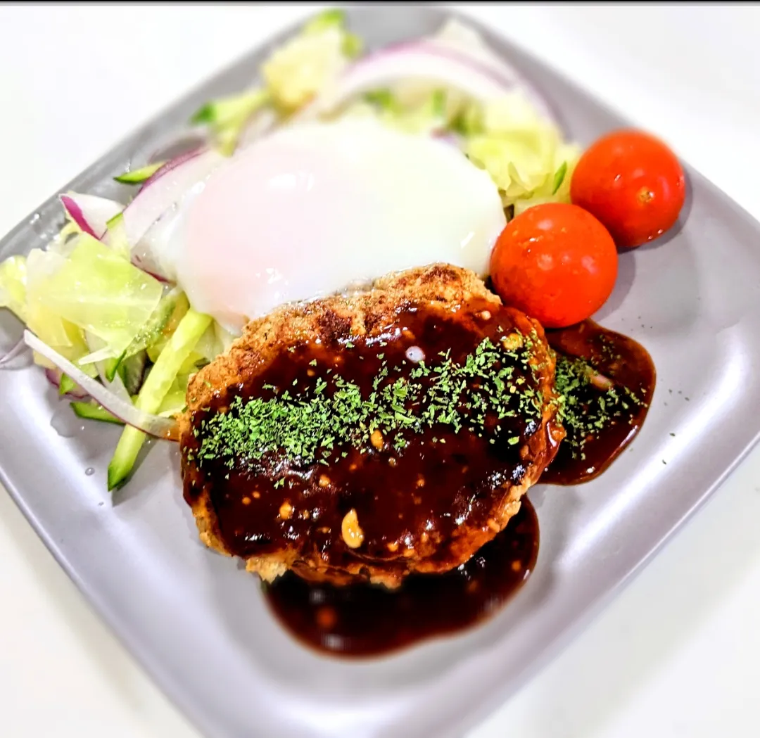 #ハンバーグ#温玉#夜食#ナツメグ#オールスパイス#野菜#おいしい😋