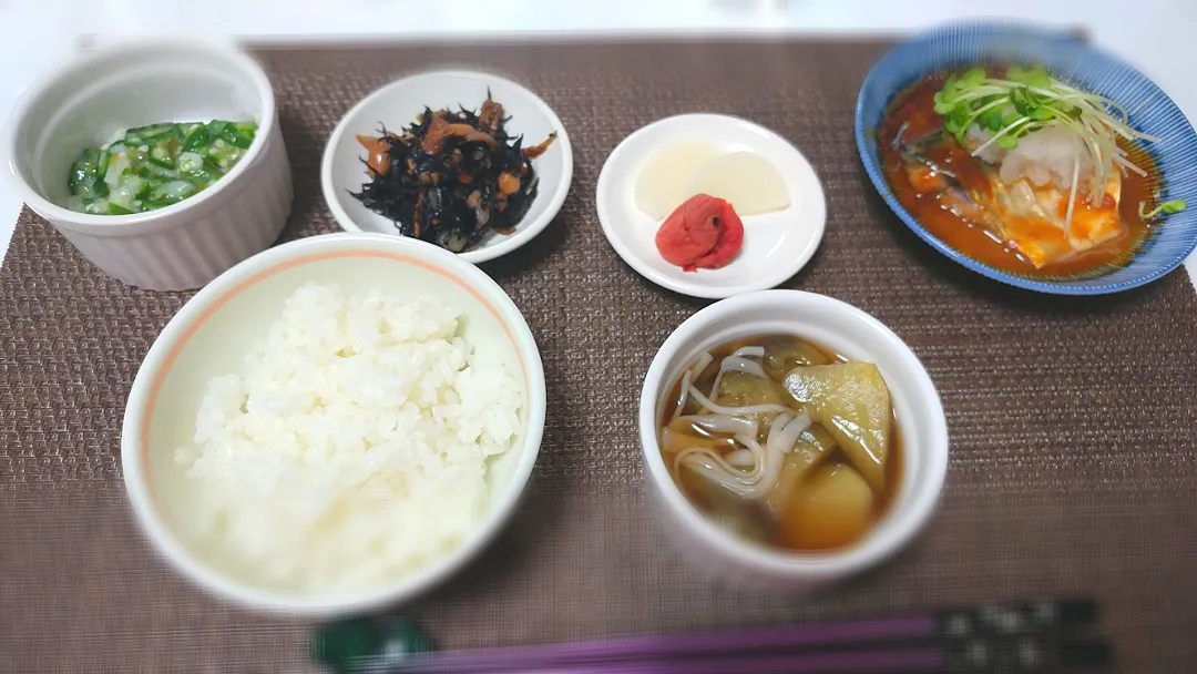 *オクラとめかぶの山芋和え(夫はポテトサラダ)