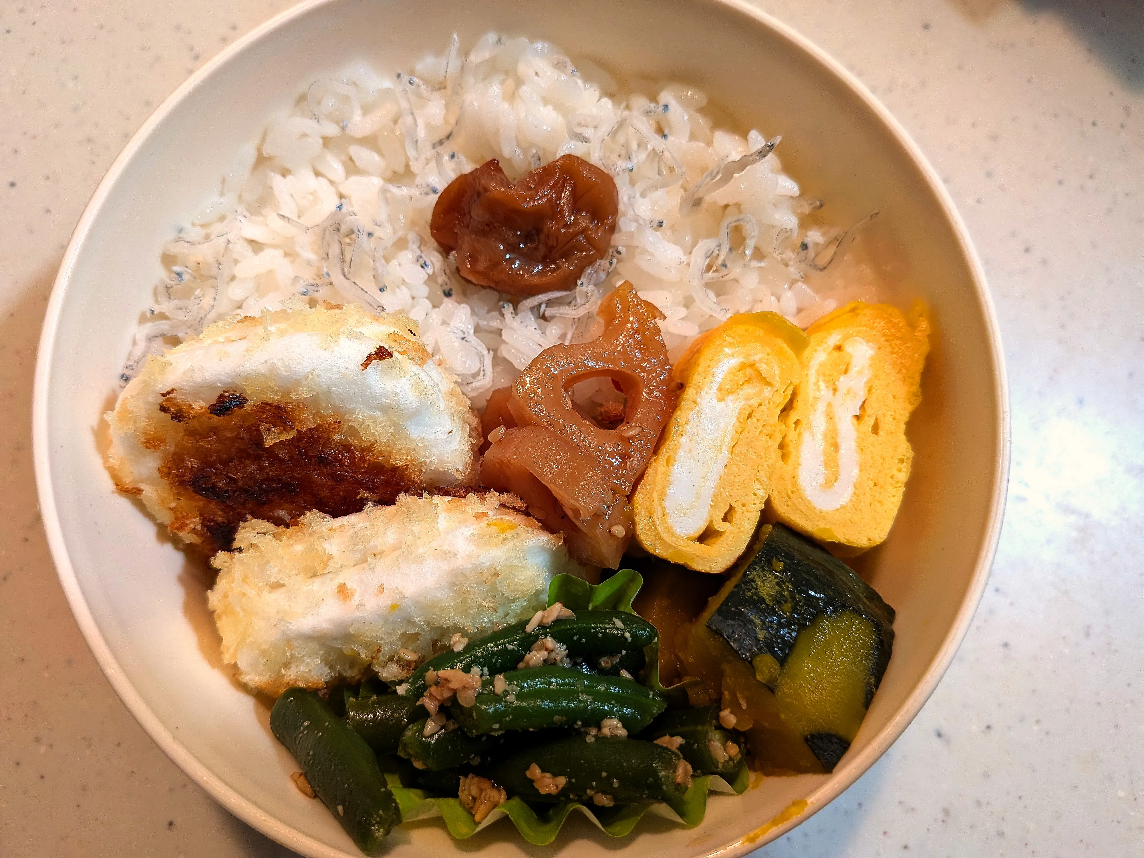 #はんぺん #厚焼き玉子  #いんげんの胡麻和え  #かぼちゃの煮物