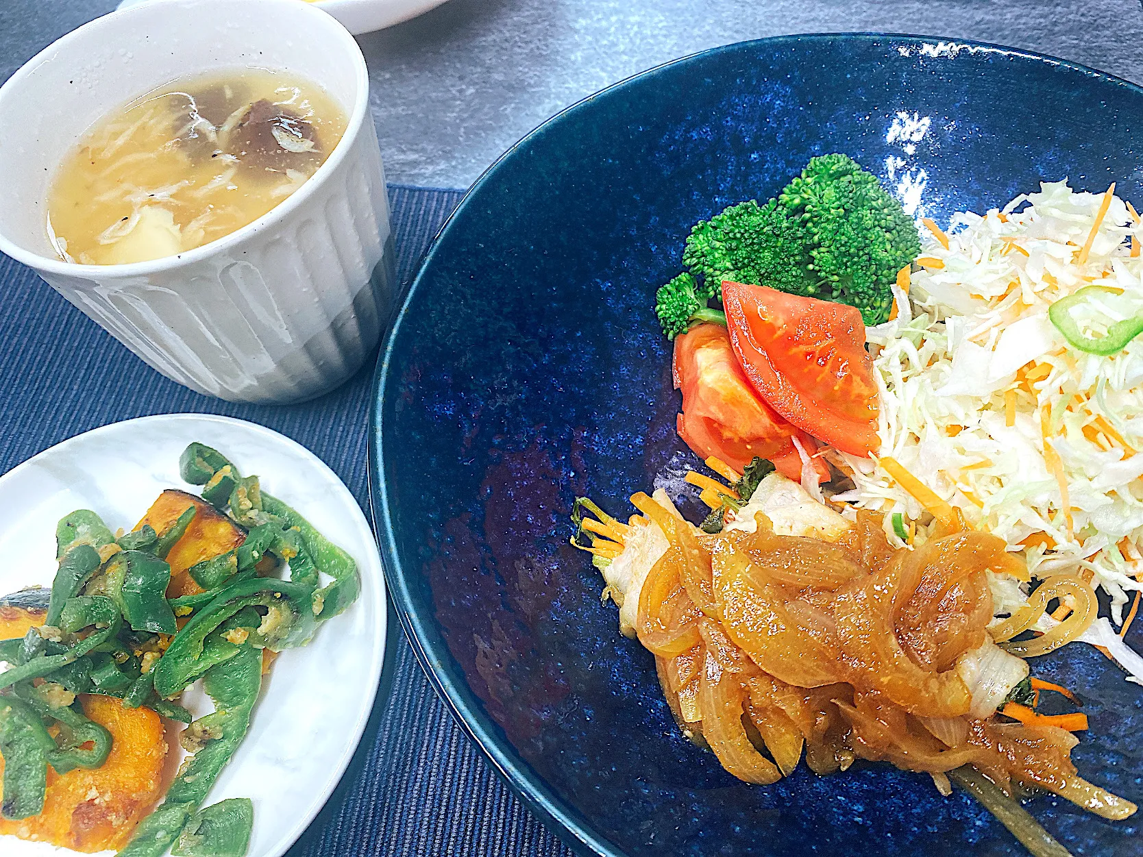 #かぼちゃとピーマンのパルメザンソテー #桜えび茶碗蒸し #春雨スープ
