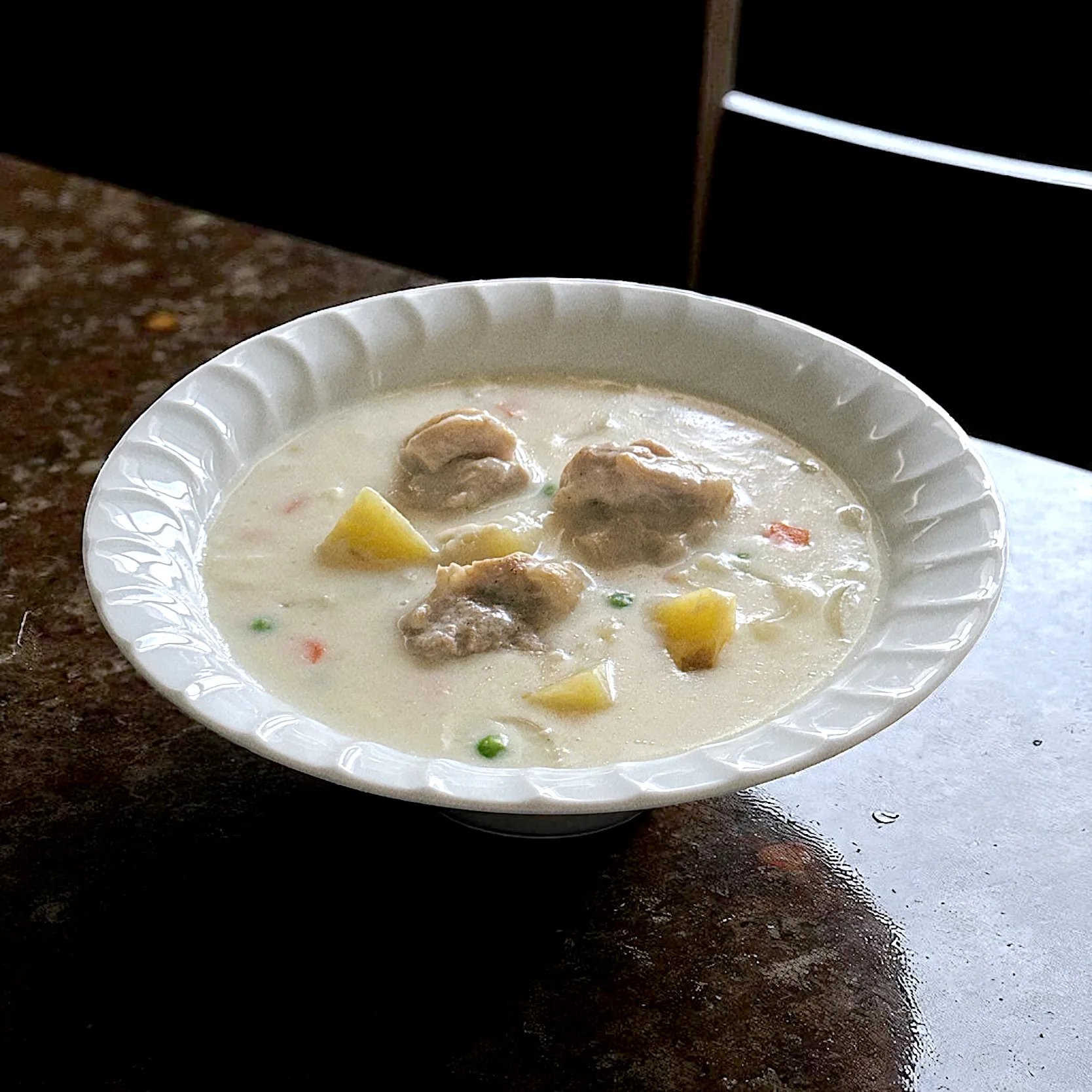 シチューの鶏肉は、岩手県産モモ肉。