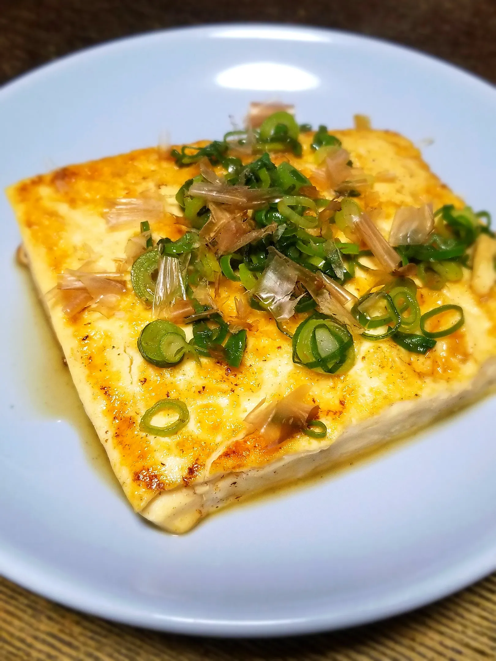 #晩ご飯 #男の手料理 #豆腐ステーキ #豆腐 #鰹節 #青ネギ #めんつゆ