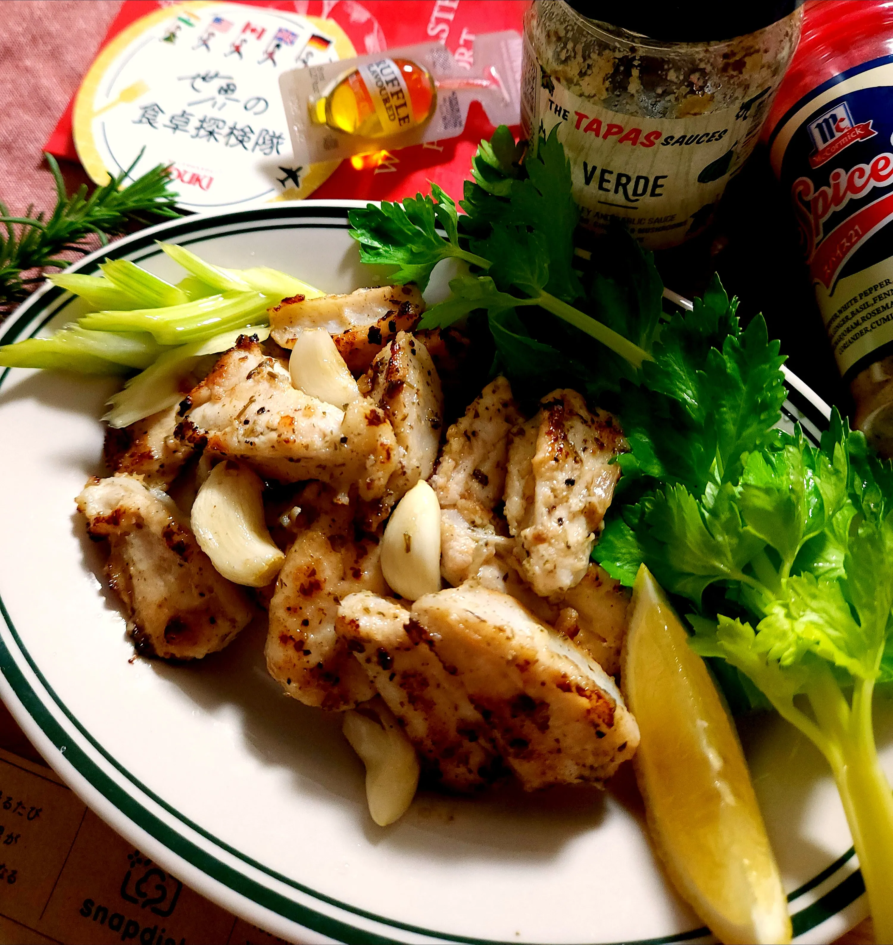 翌日仕事だから、ガーリック控えめにして、スパイス21振り掛けヴェルデ控えめに