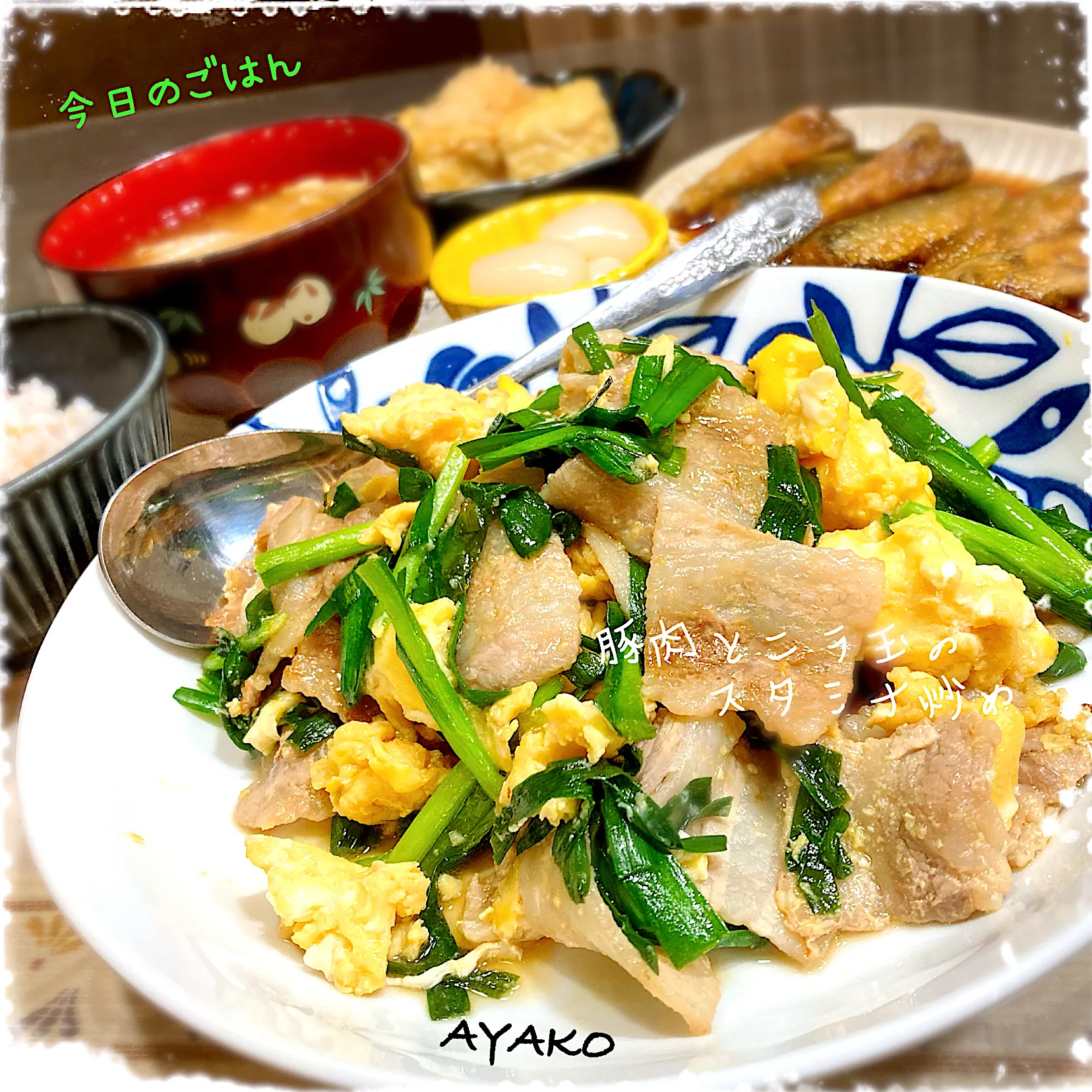#豚肉 #スタミナ炒め #ニラ玉 #揚げ出し豆腐