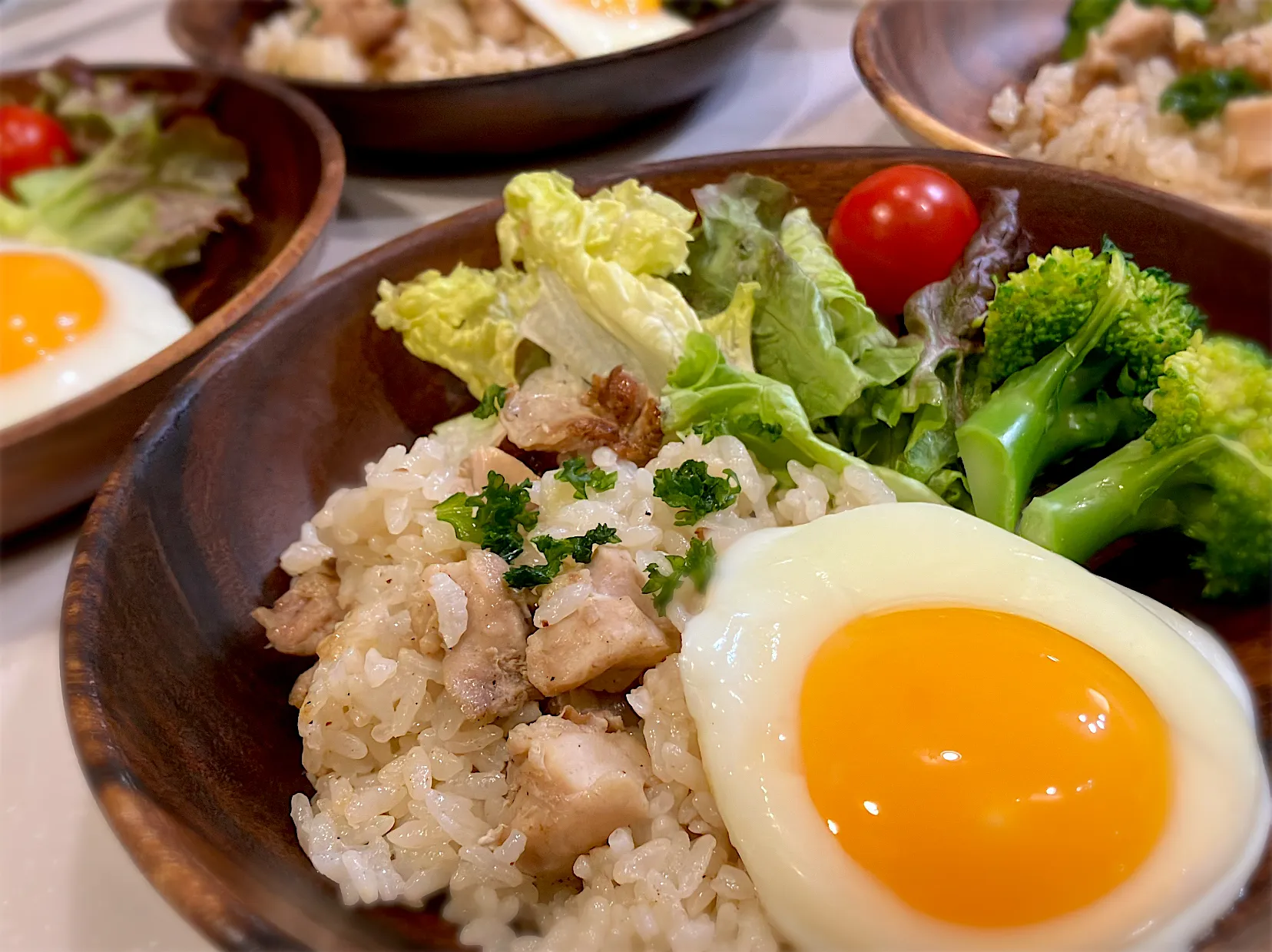 にんじんとツナのピラフ、グリルドチキンとミートボール...