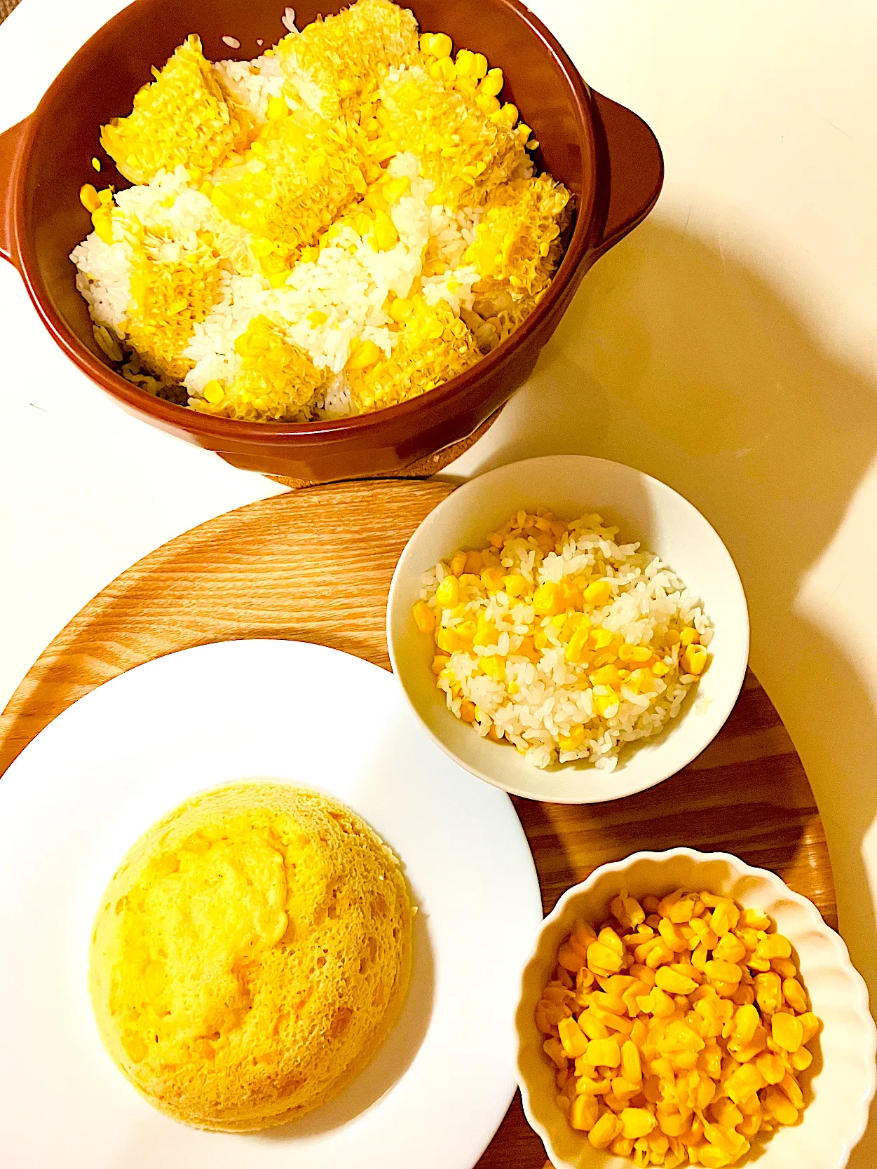 とうもろこしづくしです^ - ^💖ありがたやー🙏 #とうもろこしの芯でご飯 #コーン入りおからケーキ #バターコーン