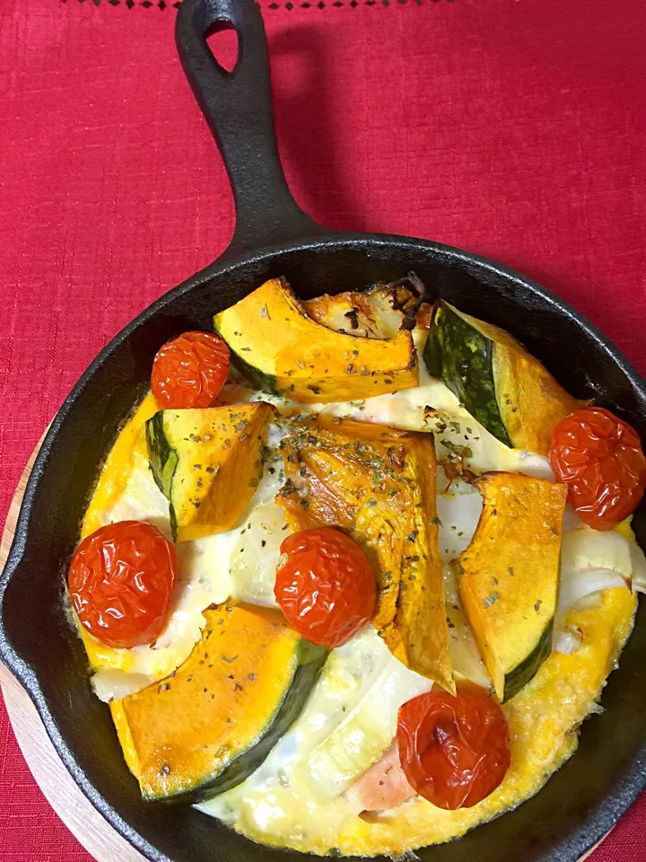 ニトスキでサーモン入り野菜のせオムレツ👍