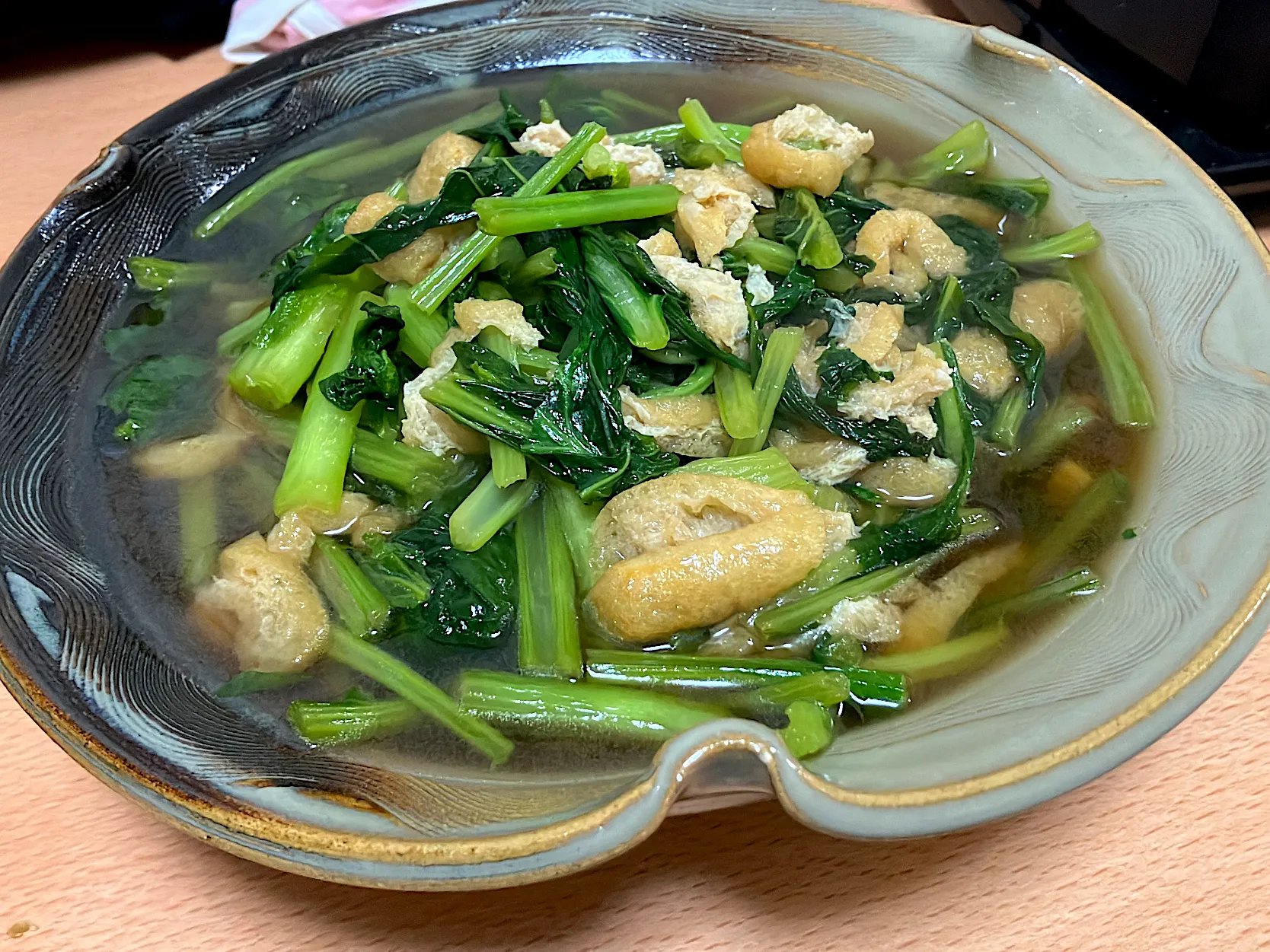 #地元の食材 #地産地消 #節約料理 #簡単料理 #無料食材 #旬の食材 #日の出新味料#伸びすぎた小松菜#油揚げ