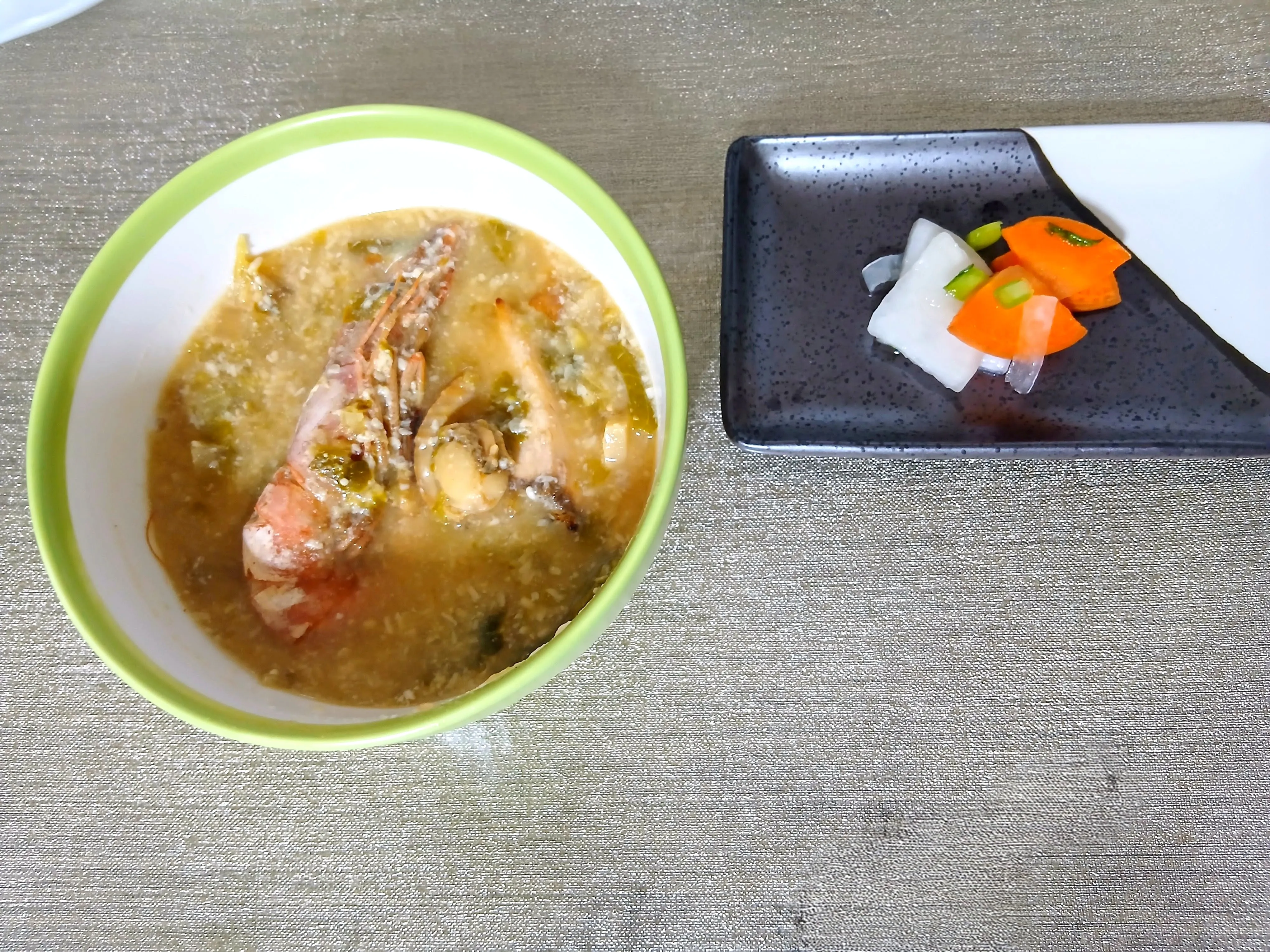 冷凍して出し忘れてた海老のおかげで豪華な粕汁になりました😆✨