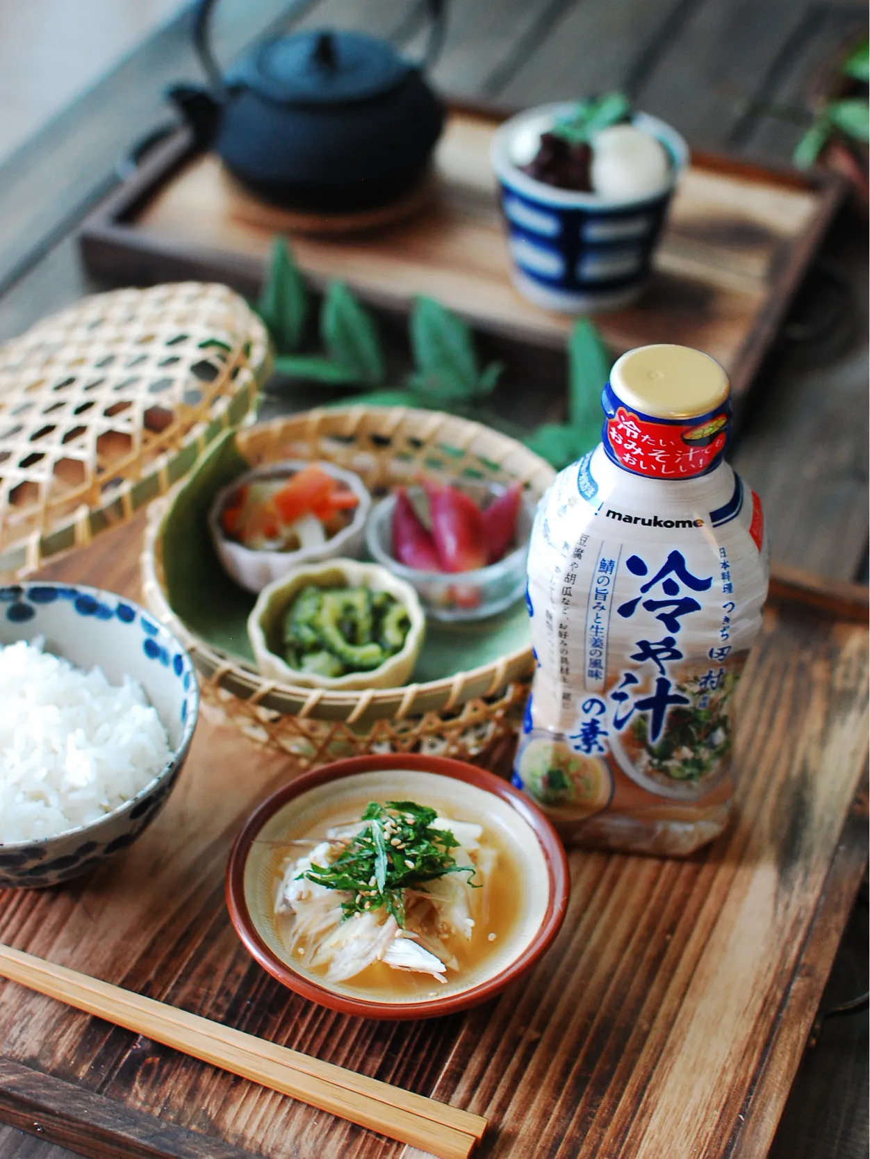 マルコメさんの液みそつきぢ田村監修冷や汁の素で冷や汁を作りました。