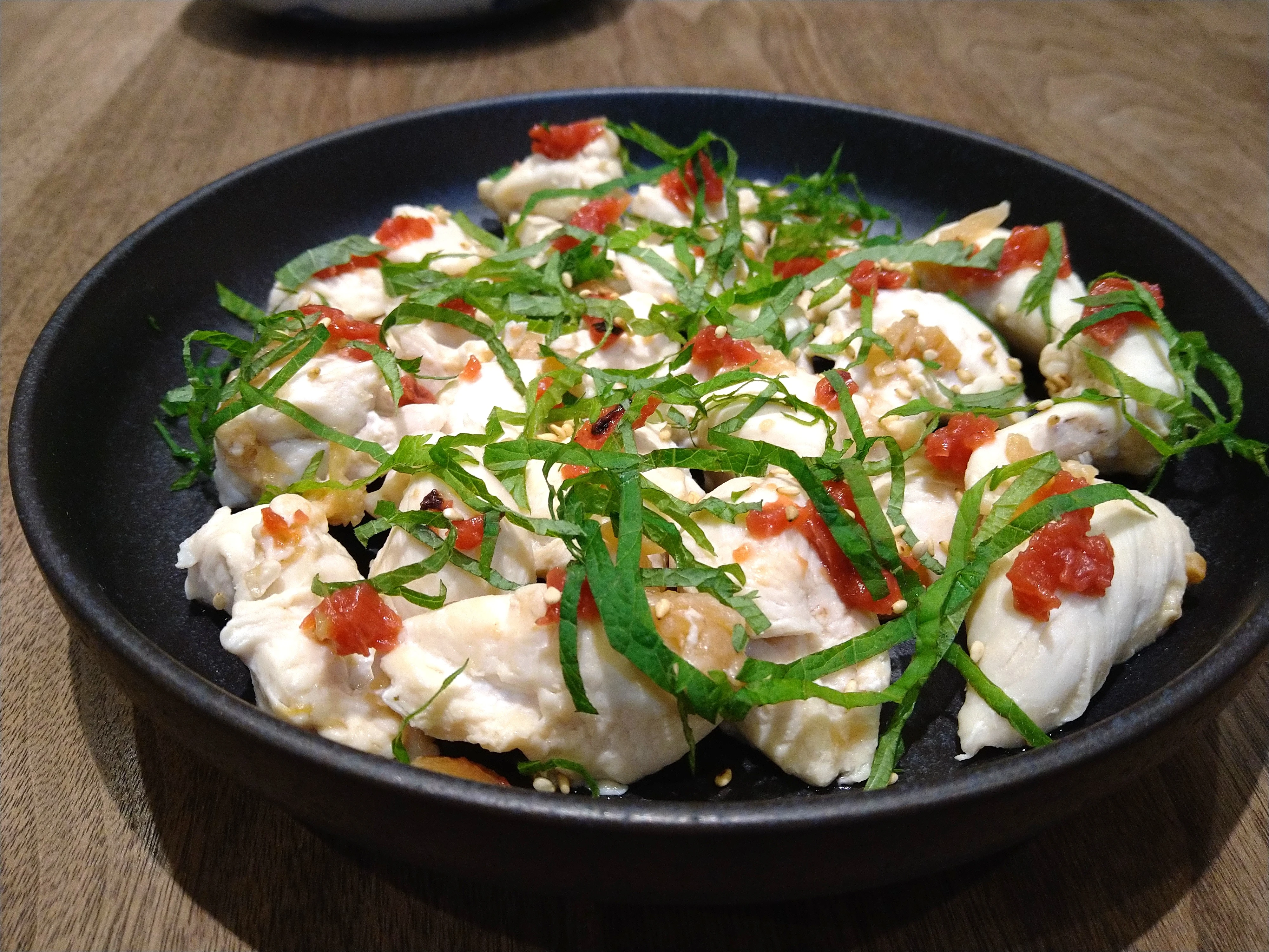 ささみ 叩いた梅干し 酒 塩 ごま油を揉み込み 蒸すだけ