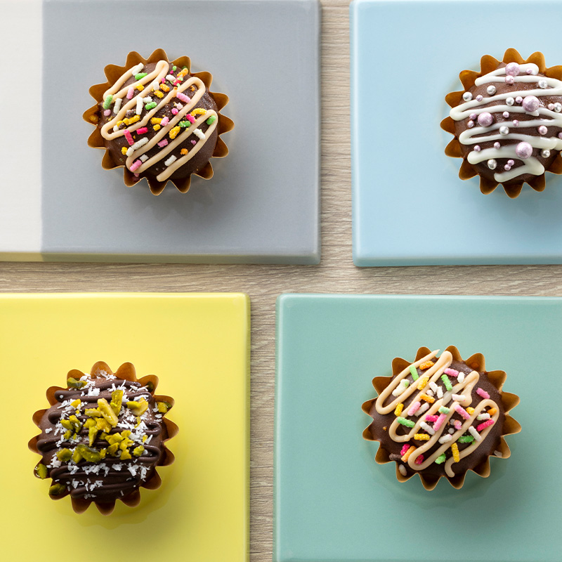 ホイップした生クリームを冷やし固めてチョコソースで包むことで、とろっとした食感に仕上がります。