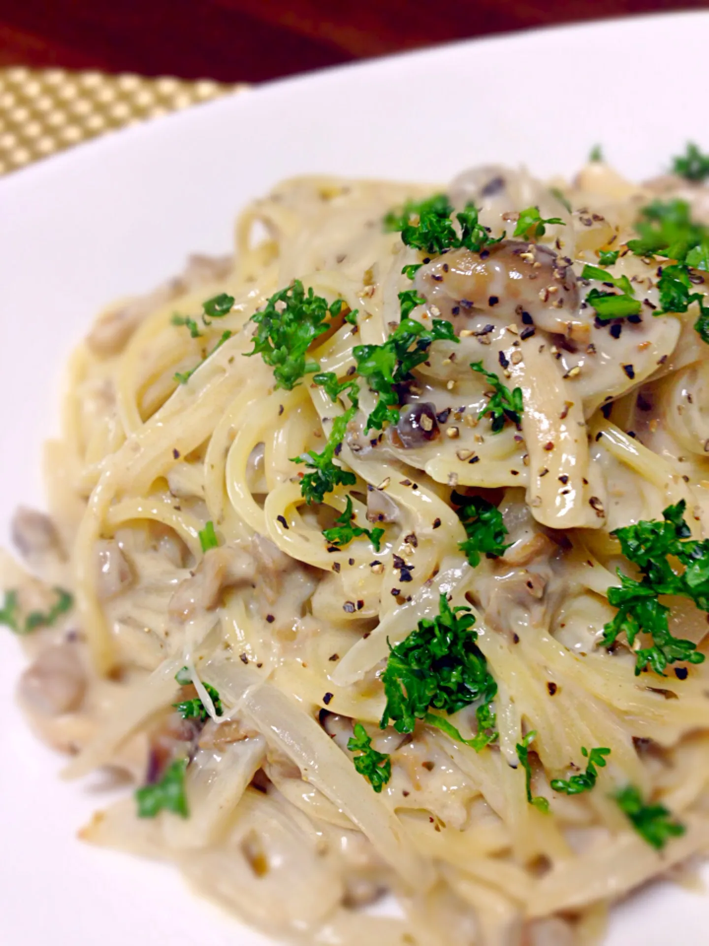 キノコのクリームスパゲティ