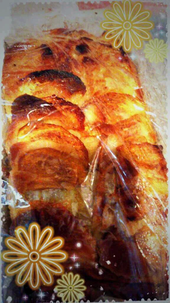 パウンドケーキ型に流し込み、半月切りの柿を上に並べる。そして180度のオーブンで45から50分くらい焼く
