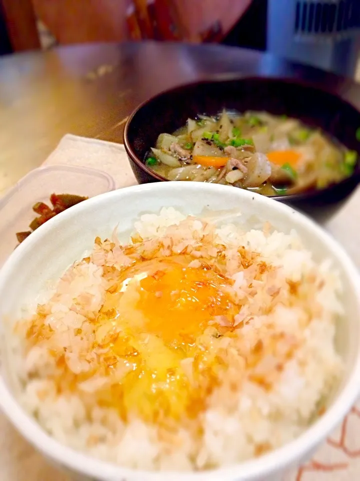 卵かけごはん+かつお節(=^ェ^=)