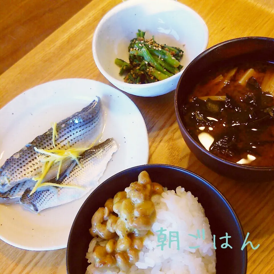 生ワカメと豆腐のみそ汁 #朝ごはん #お魚