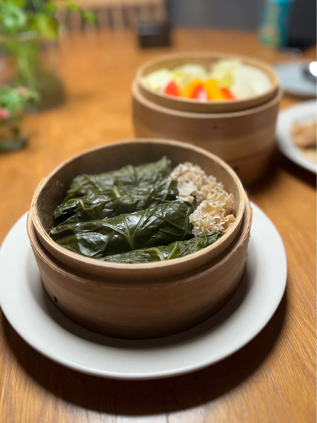 • 11/30の夕食 野菜の蒸籠蒸し 菊芋、大根、手羽先、せり|yoneさん