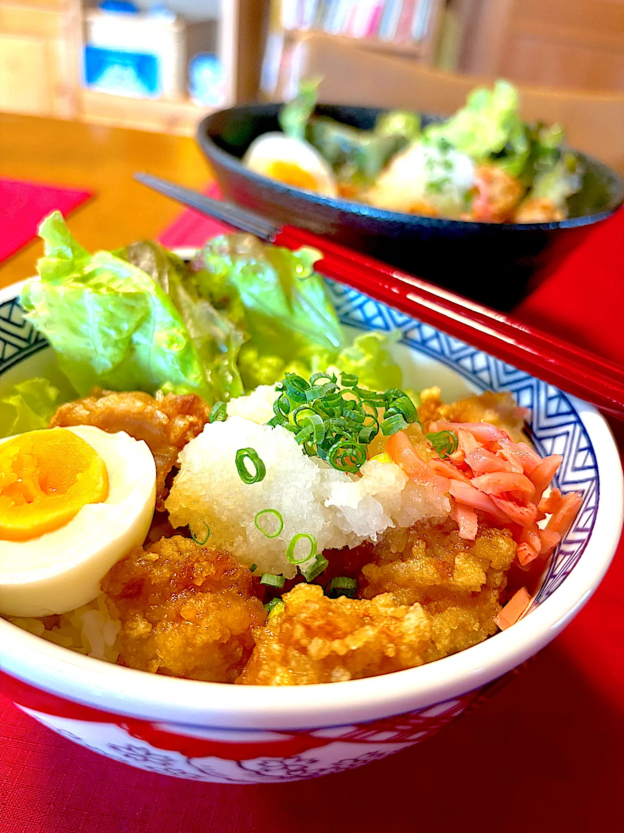 丼になってガッツリだけど唐揚げもおろしで爽やか~に平らげられますね😋
